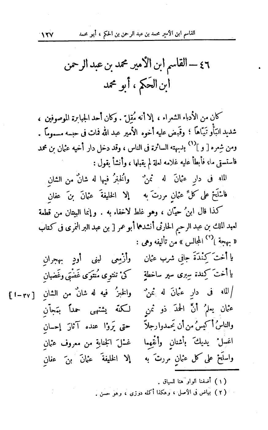 كَانَ من أهل الشّرف والثروة وولاه إِبْرَاهِيم بن أَحْمد الأربس وَغَيرهَا وَكَانَ ينادمه لحذقه الْغناء ثمَّ أخرجه إِلَى صقلية وولاه الْعَسْكَر الَّذِي بمسيني وَأَرْض قلورية بعد وقْعَة ميلاص فَخرج فِي شينى يُرِيد قلورية فأسرته الرّوم وَحمل إِلَى الْقُسْطَنْطِينِيَّة فَمَاتَ بهَا وَهُوَ الْقَائِل فِي أسره من قصيدة طَوِيلَة بعث بهَا من محبسه عِنْد الرّوم وَرَوَاهَا فِي أَيَّام بنى الْأَغْلَب أَكثر النَّاس