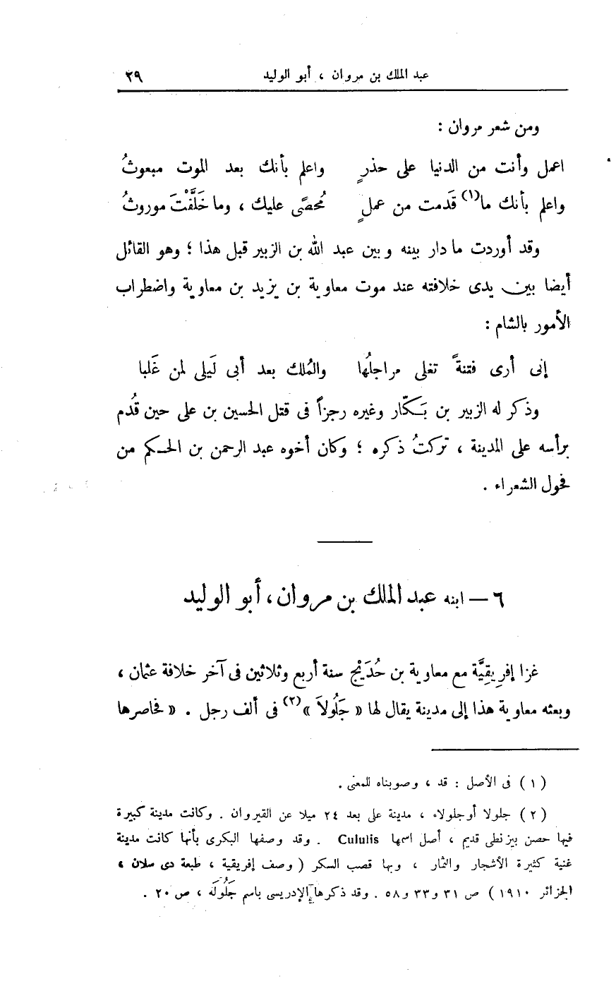 كَانَ والياً على الزاب فَأقبل مِنْهَا لمحاربة ابْن الْجَارُود وَلما وصل إِلَى الأربس اجْتمع مَعَ أهل الشَّام وَبلغ ذَلِك ابْن الْجَارُود فَقَالَ أَفِي كل يَوْم ثَائِر قد قتلته الأبيات الرائية الْمُتَقَدّمَة وَكتب إِلَيْهِ كتابا مَعَه فجاوبه الْعَلَاء عَنهُ وَقَالَ يخاطبه