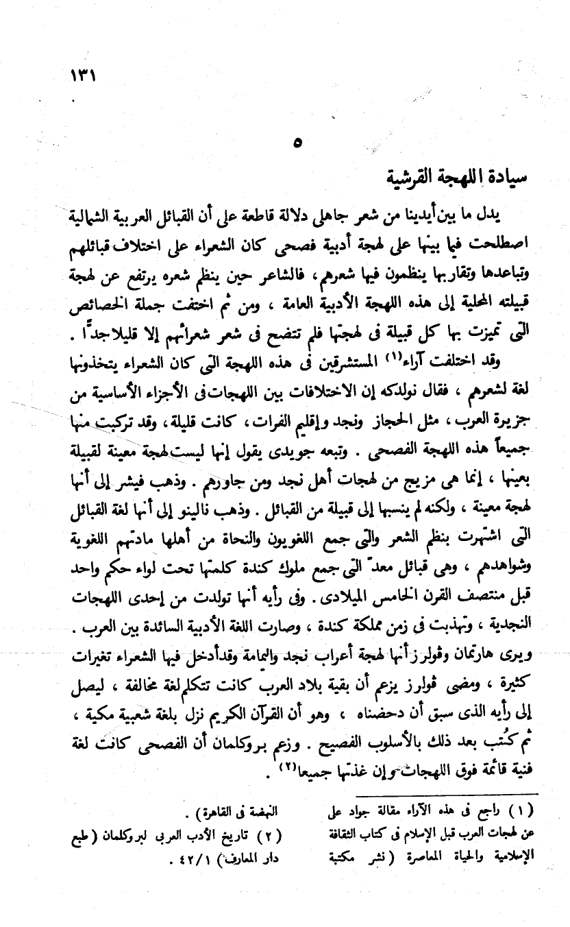 (¬1) راجع فى هذه الآراء مقالة جواد على عن لهجات العرب قبل الإسلام فى كتاب الثقافة الإسلامية والحياة المعاصرة (نشر مكتبة النهضة فى القاهرة).