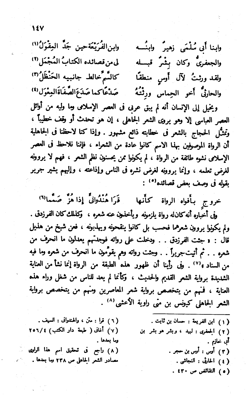 (¬8) راجع فى تحقيق اسم هذا الراوى مصادر الشعر الجاهلى ص 238 وما بعدها.
