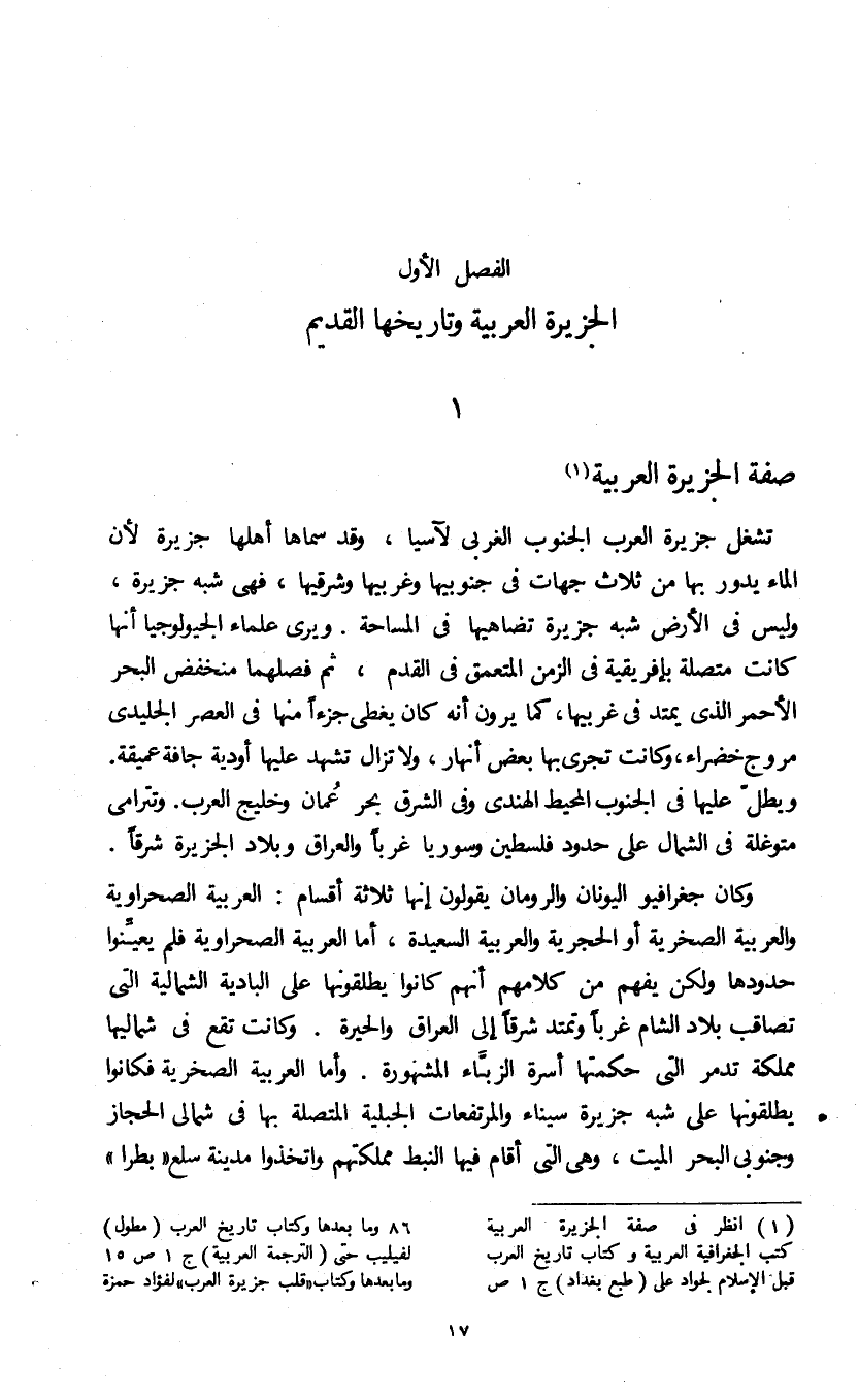 (¬1) انظر فى صفة الجزيرة العربية كتب الجغرافية العربية وكتاب تاريخ العرب قبل الإسلام لجواد على (طبع بغداد) ج 1 ص 86 وما بعدها وكتاب تاريخ العرب (مطول) لفيليب حتى (الترجمة العربية) ج 1 ص 15 وما بعدها وكتاب «قلب جزيرة العرب» لفؤاد حمزة