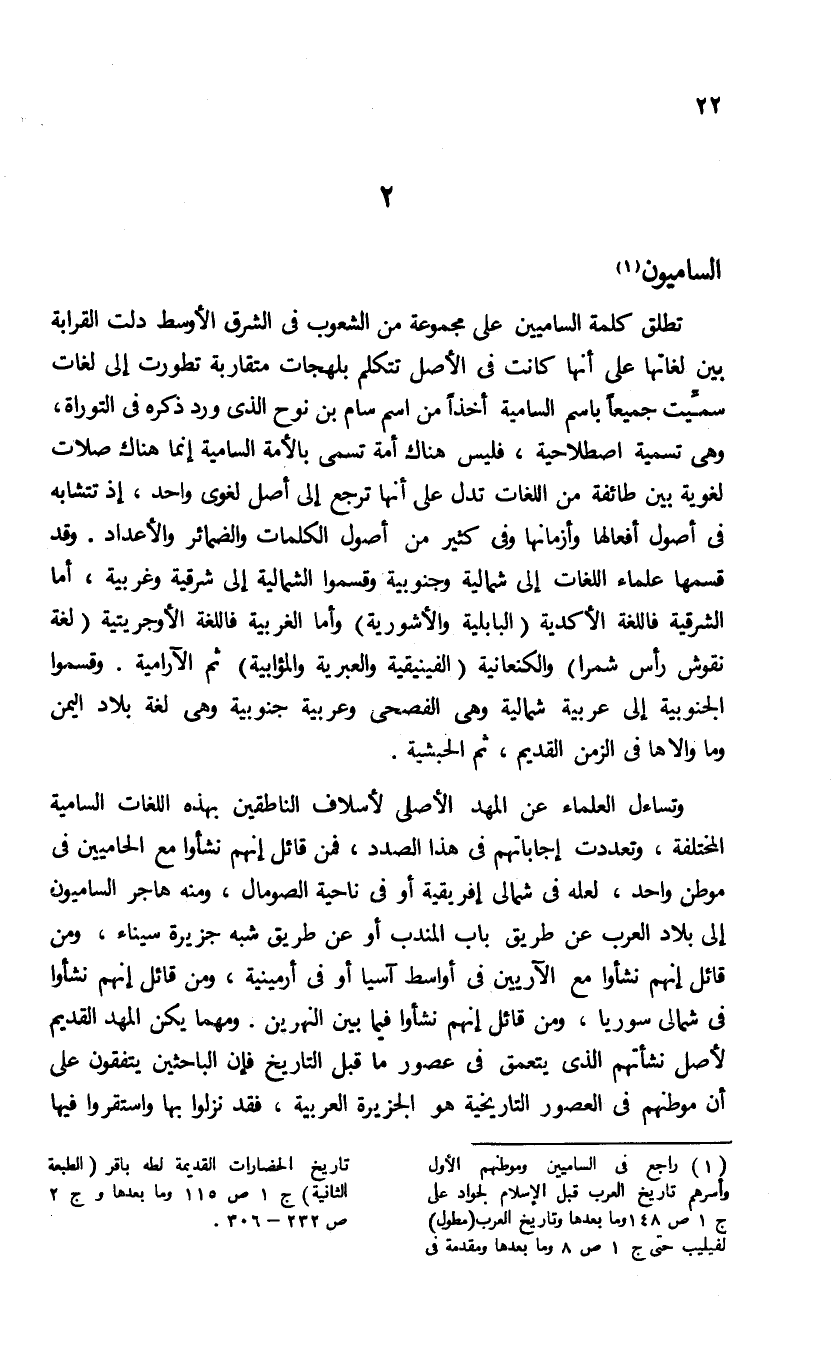 (¬1) راجع فى الساميين وموطنهم الأول وأسرهم تاريخ العرب قبل الإسلام لجواد على ج 1 ص 148 وما بعدها وتاريخ العرب (مطول) لفيليب حتى ج 1 ص 8 وما بعدها ومقدمة فى تاريخ الحضارات القديمة لطه باقر (الطبعة الثانية) ج 1 ص 115 وما بعدها وج 2 ص 232 - 306.