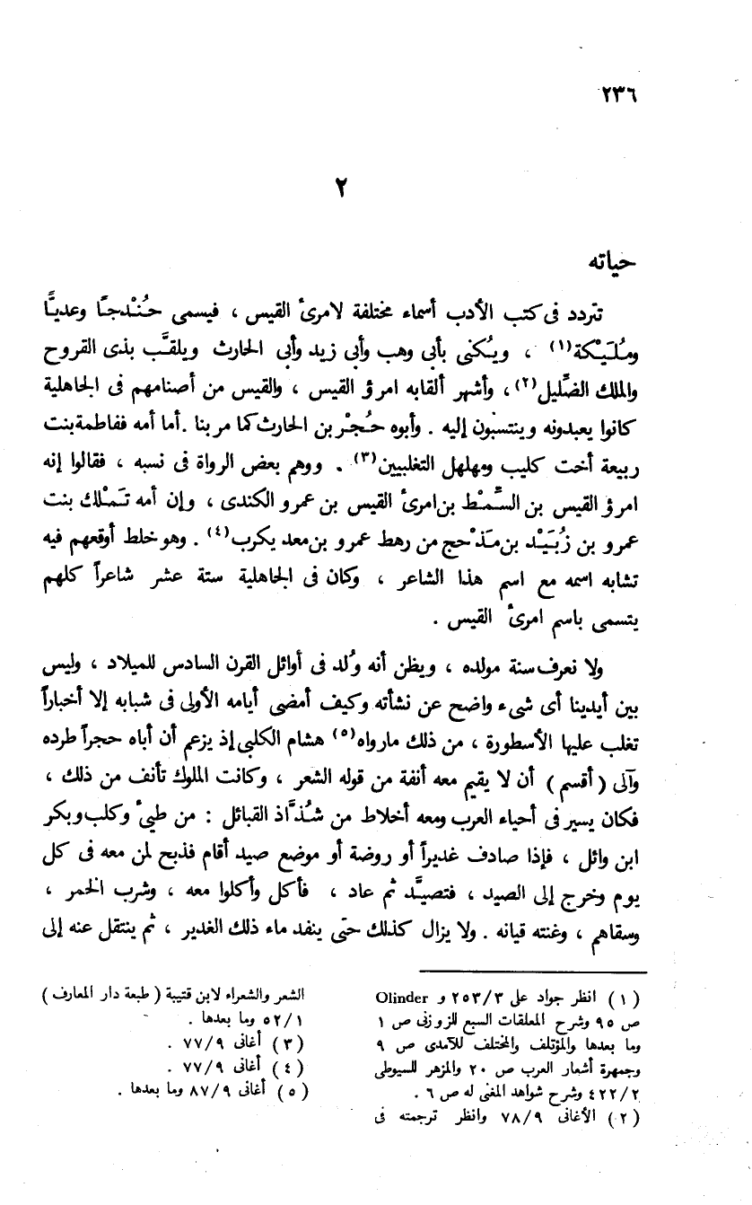 (¬1) انظر جواد على 3/ 253 و Olimder ص 95 وشرح المعلقات السبع للزوزنى ص 1 وما بعدها والمؤتلف والمختلف للآمدى ص 9 وجمهرة أشعار العرب ص 20 والمزهر للسيوطى 2/ 422 وشرح شواهد المغنى له ص 6.
