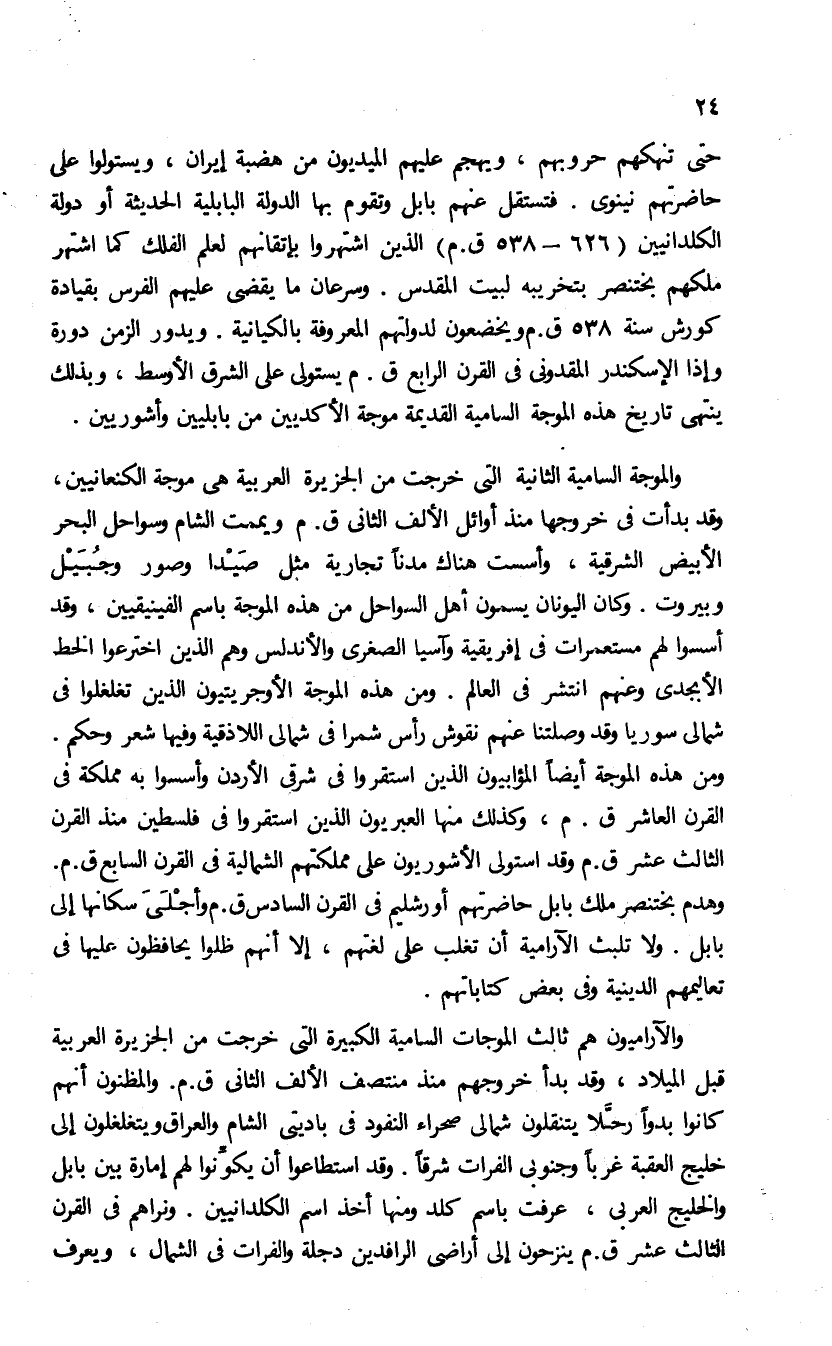 حتى تنهكهم حروبهم، ويهجم عليهم الميديون من هضبة إيران، ويستولوا على حاضرتهم نينوى. فتستقل عنهم بابل وتقوم بها الدولة البابلية الحديثة أو دولة الكلدانيين (626 - 538 ق. م) الذين اشتهروا بإتقانهم لعلم الفلك كما اشتهر ملكهم بختنصر بتخريبه لبيت المقدس. وسرعان ما يقضى عليهم الفرس بقيادة كورش سنة 538 ق. م ويخضعون لدولتهم المعروفة بالكيانية. ويدور الزمن دورة وإذا الإسكندر المقدونى فى القرن الرابع ق. م يستولى على الشرق الأوسط، وبذلك ينتهى تاريخ هذه الموجة السامية القديمة موجة الأكديين من بابليين وأشوريين.