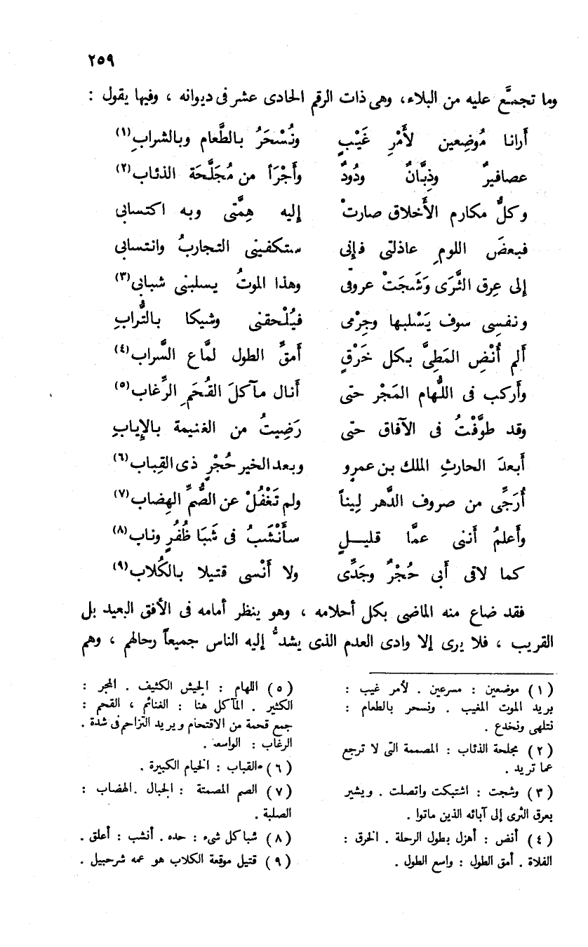 وما تجمّع عليه من البلاء، وهى ذات الرقم الحادى عشر فى ديوانه، وفيها يقول: