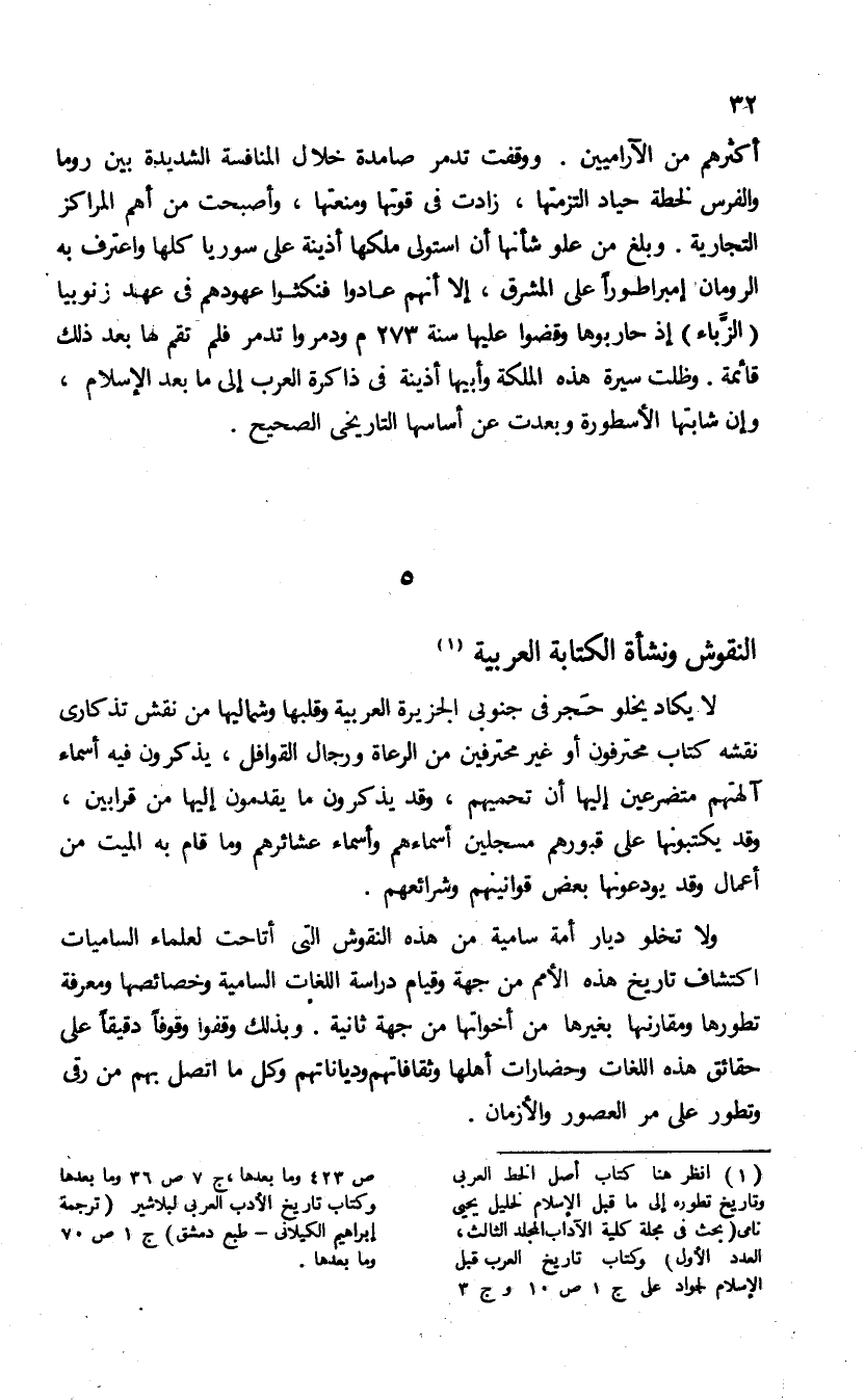(¬1) انظر هنا كتاب أصل الخط العربى وتاريخ تطوره إلى ما قبل الإسلام لخليل يحيى نامى (بحث فى مجلة كلية الآداب المجلد الثالث، العدد الأول) وكتاب تاريخ العرب قبل الإسلام لجواد على ج 1 ص 10 وج 3 ص 423 وما بعدها، ج 7 ص 36 وما بعدها وكتاب تاريخ الأدب العربى لبلاشير (ترجمة إبراهيم الكيلانى طبع دمشق) ج 1 ص 70 وما بعدها.