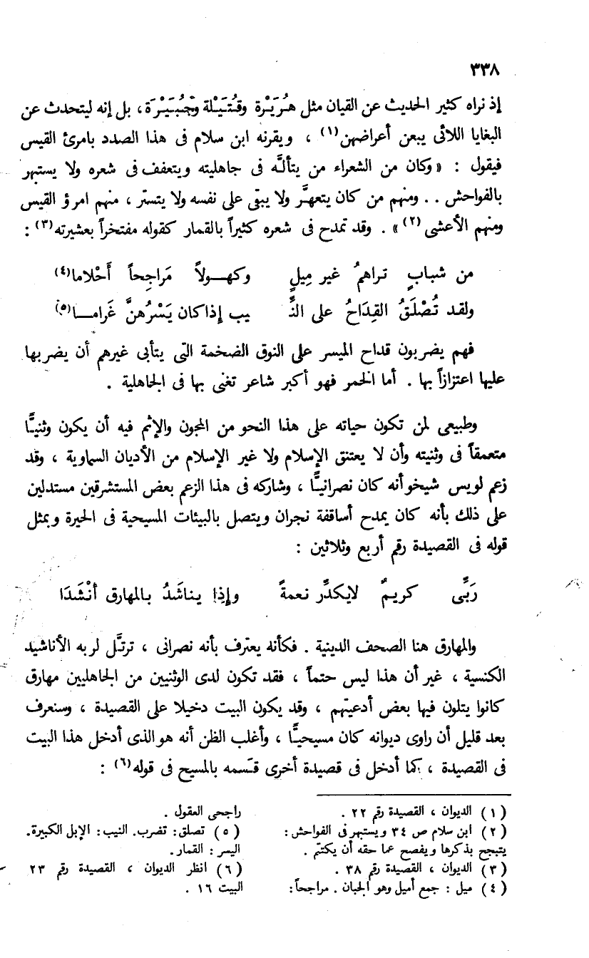 والمهارق هنا الصحف الدينية. فكأنه يعترف بأنه نصرانى، ترتّل لربه الأناشيد الكنسية. غير أن هذا ليس حتما، فقد تكون لدى الوثنيين من الجاهليين مهارق كانوا يتلون فيها بعض أدعيتهم. وقد يكون البيت دخيلا على القصيدة، وسنعرف بعد قليل أن راوى ديوانه كان مسيحيّا، وأغلب الظن أنه هو الذى أدخل هذا البيت فى القصيدة، كما أدخل فى قصيدة أخرى قسمه بالمسيح فى قوله (¬6):