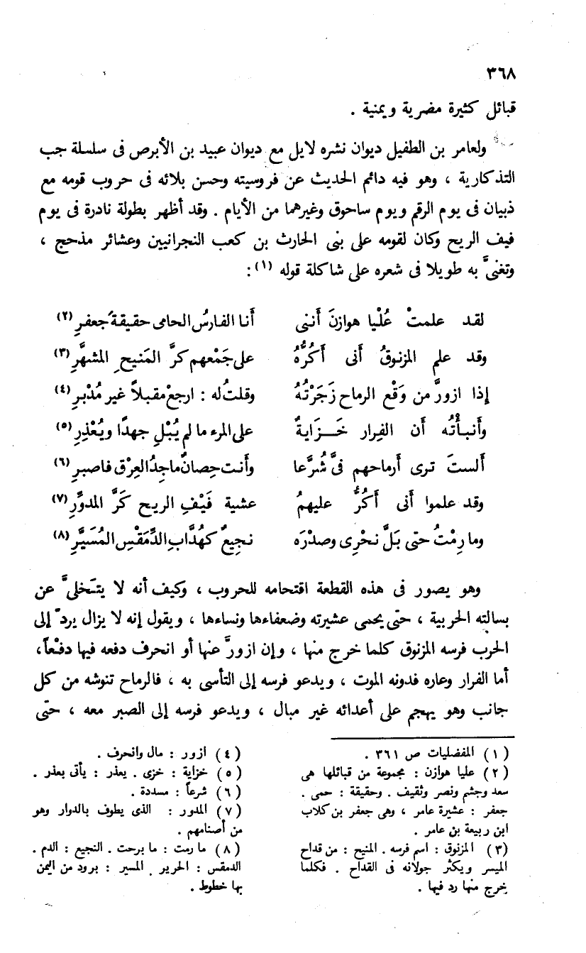 (¬2) عليا هوازن: مجموعة من قبائلها هى سعد وجشم ونصر وثقيف. وحقيقة: حمى. جعفر: عشيرة عامر، وهى جعفر بن كلاب ابن ربيعة بن عامر.