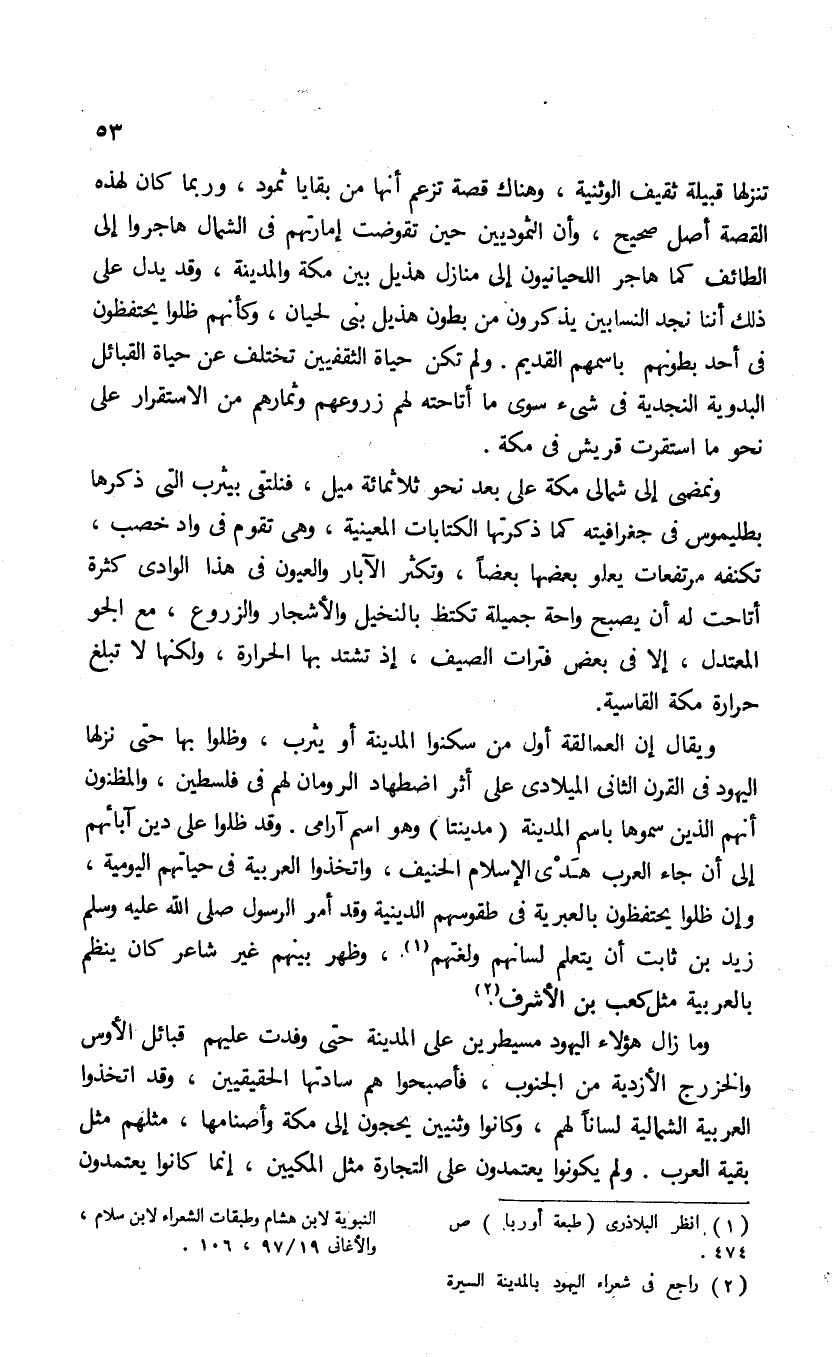 (¬2) راجع فى شعراء اليهود بالمدينة السيرة النبوية لابن هشام وطبقات الشعراء لابن سلام، والأغانى 19/ 97، 106.