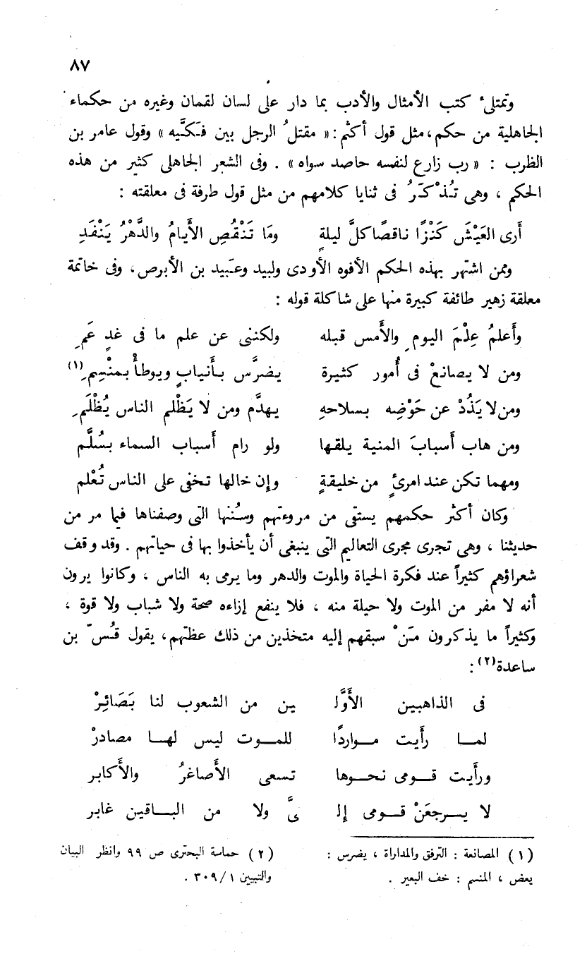 (¬2) حماسة البحترى ص 99 وانظر البيان والتبيين 1/ 309.
