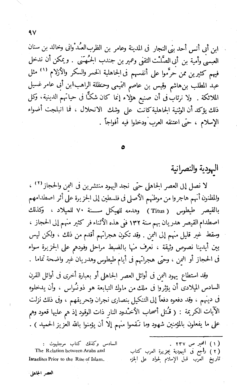 (¬2) راجع فى اليهودية بجزيرة العرب كتاب تاريخ العرب قبل الإسلام لجواد على الجزء السادس وكذلك كتاب مرجليوث Israelites Prior to the Rise of Islam . The Relation Between Arabs and: