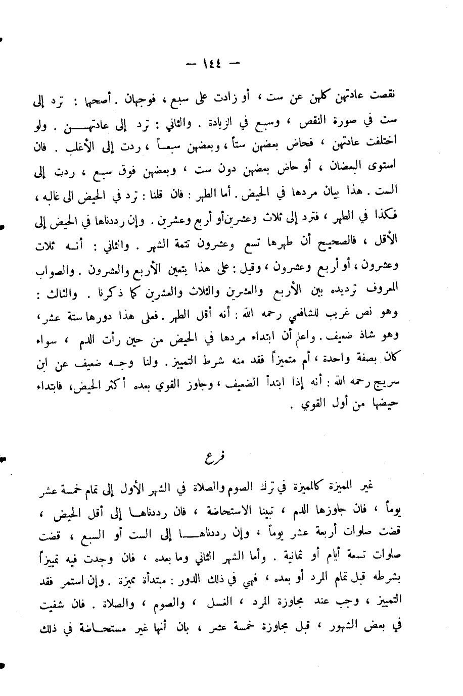 هَذَا بَيَانُ مَرَدِّهَا فِي الْحَيْضِ. أَمَّا الطُّهْرُ: فَإِنْ قُلْنَا: تُرَدُّ فِي الْحَيْضِ إِلَى غَالِبِهِ، فَكَذَا فِي الطُّهْرِ، فَتُرَدُّ إِلَى ثَلَاثٍ وَعِشْرِينَ أَوْ أَرْبَعٍ وَعِشْرِينَ. وَإِنْ رَدَدْنَاهَا فِي الْحَيْضِ إِلَى الْأَقَلِّ، فَالصَّحِيحُ أَنَّ طُهْرَهَا تِسْعٌ وَعِشْرُونَ تَتِمَّةُ الشَّهْرِ. وَالثَّانِي: أَنَّهُ ثَلَاثٌ وَعِشْرُونَ، أَوْ أَرْبَعٌ وَعِشْرُونَ، وَقِيلَ: عَلَى هَذَا يَتَعَيَّنُ الْأَرْبَعُ وَالْعِشْرُونَ. وَالصَّوَابُ الْمَعْرُوفُ تَرْدِيدُهُ بَيْنَ الْأَرْبَعِ وَالْعِشْرِينَ وَالثَّلَاثِ وَالْعِشْرِينَ كَمَا ذَكَرْنَا. وَالثَّالِثُ: وَهُوَ نَصٌّ غَرِيبٌ لِلشَّافِعِيِّ - رَحِمَهُ اللَّهُ -: أَنَّهُ أَقَلُّ الطُّهْرِ. فَعَلَى هَذَا دَوْرُهَا سِتَّةَ عَشَرَ، وَهُوَ شَاذٌّ ضَعِيفٌ.