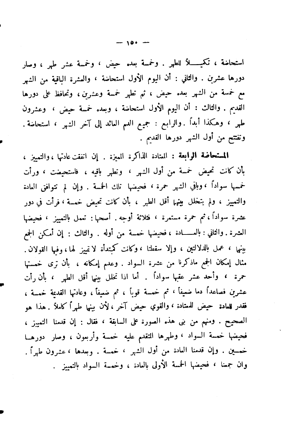 وَالرَّابِعُ: جَمِيعُ الدَّمِ الْعَائِدِ إِلَى آخِرِ الشَّهْرِ اسْتِحَاضَةٌ. وَتَفْتَتِحُ مِنْ أَوَّلِ الشَّهْرِ دَوْرَهَا الْقَدِيمَ.