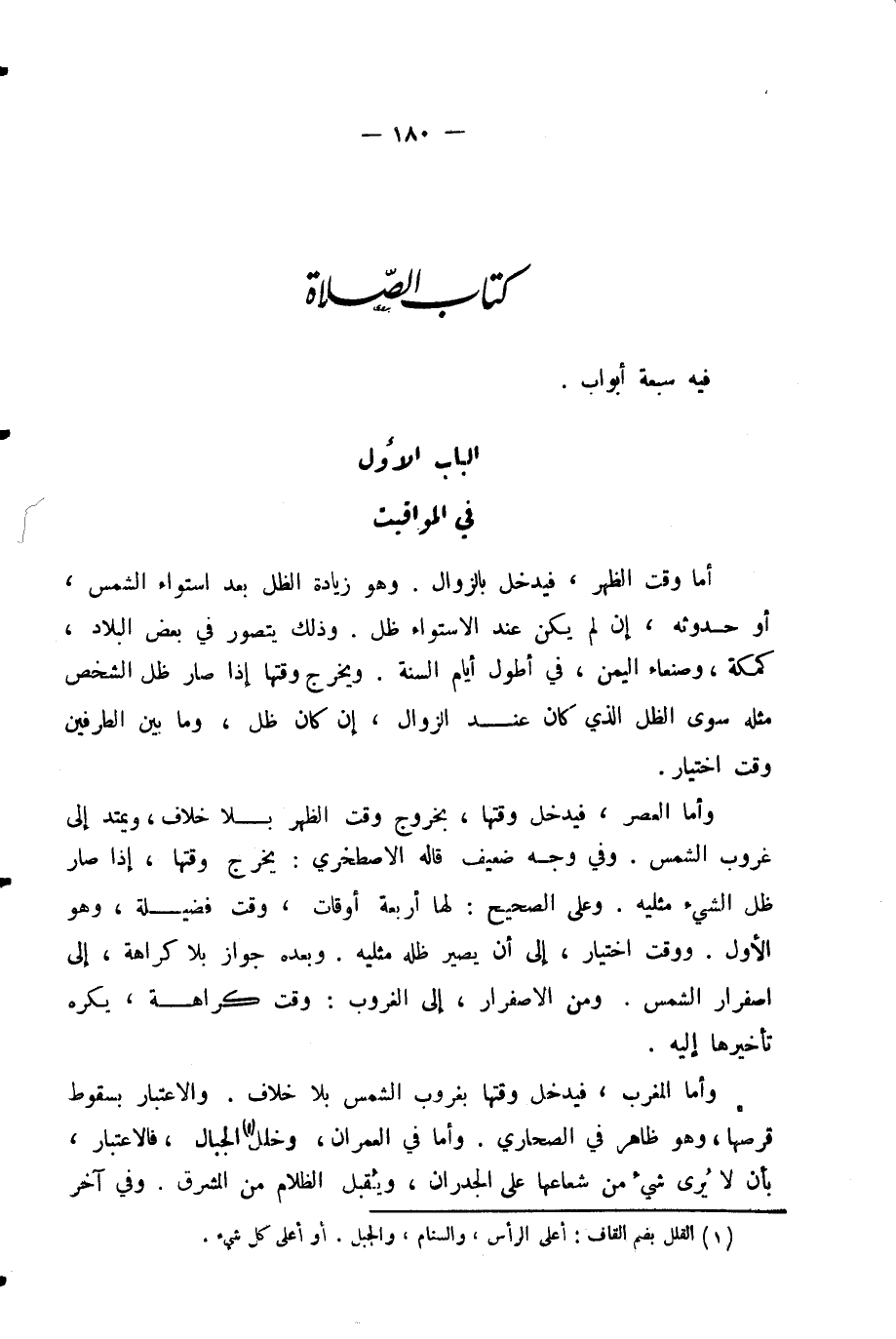 الْبَابُ الْأَوَّلُ فِي الْمَوَاقِيتِ.