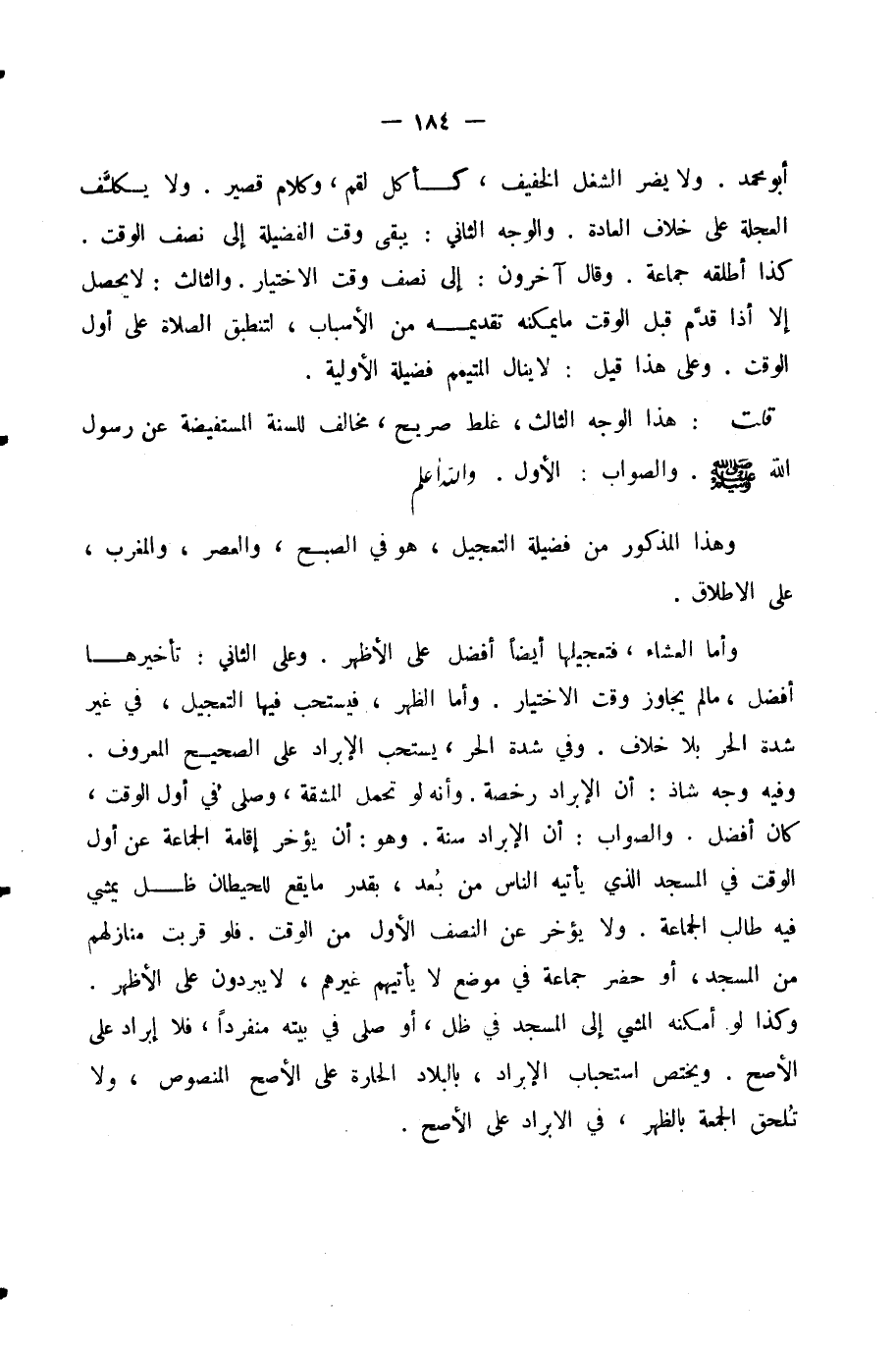 أَبُو مُحَمَّدٍ. وَلَا يَضُرُّ الشُّغْلُ الْخَفِيفُ، كَأَكْلِ لُقَمٍ، وَكَلَامٍ قَصِيرٍ. وَلَا يُكَلَّفُ الْعَجَلَةَ عَلَى خِلَافِ الْعَادَةِ.