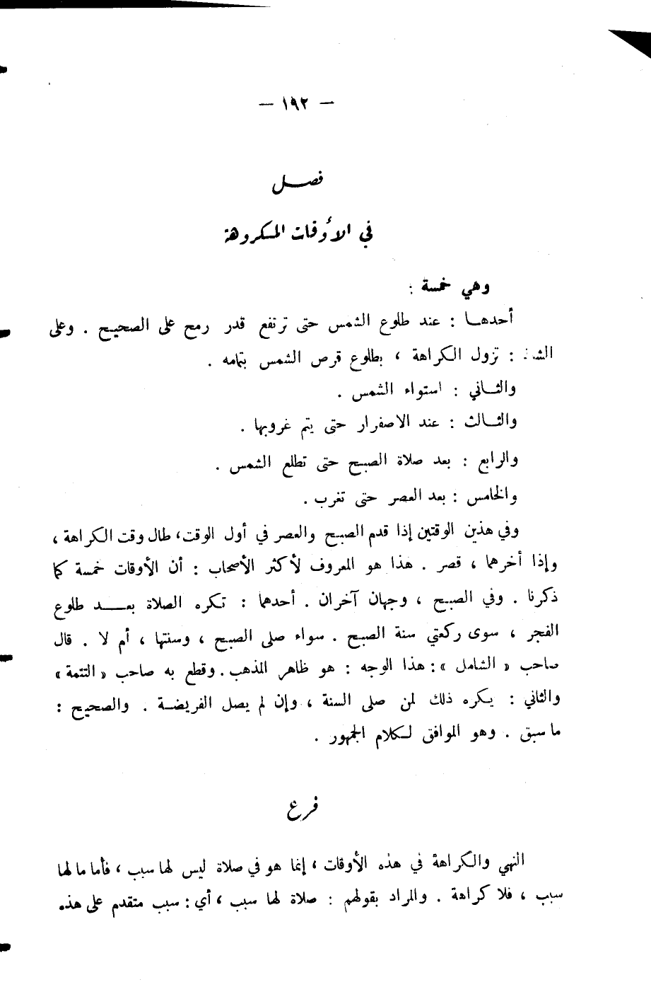 فِي الْأَوْقَاتِ الْمَكْرُوهَةِ.