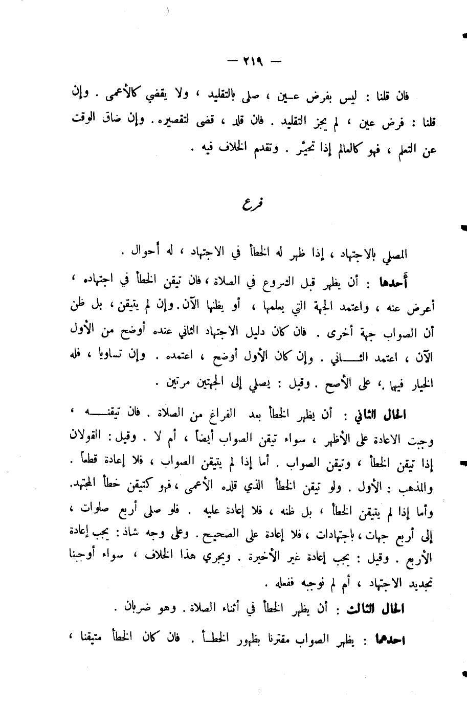 الْمُصَلِّي بِالِاجْتِهَادِ إِذَا ظَهَرَ لَهُ الْخَطَأُ فِي الِاجْتِهَادِ لَهُ أَحْوَالٌ: أَحَدُهَا: أَنْ يَظْهَرَ قَبْلَ الشُّرُوعِ فِي الصَّلَاةِ، فَإِنْ تَيَقَّنَ الْخَطَأَ فِي اجْتِهَادِهِ، أَعْرَضَ عَنْهُ وَاعْتَمَدَ الْجِهَةَ الَّتِي يَعْلَمُهَا أَوْ يَظُنُّهَا الْآنَ.