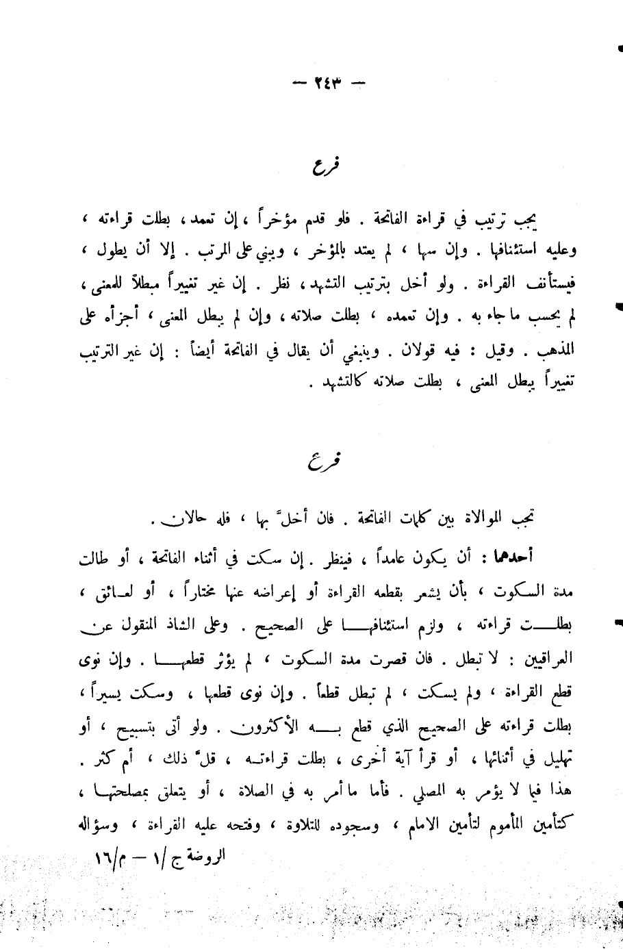 وَيَنْبَغِي أَنْ يُقَالَ فِي الْفَاتِحَةِ أَيْضًا: إِنْ غَيَّرَ التَّرْتِيبَ تَغْيِيرًا يُبْطِلُ الْمَعْنَى، بَطَلَتْ صَلَاتُهُ كَالتَّشَهُّدِ.