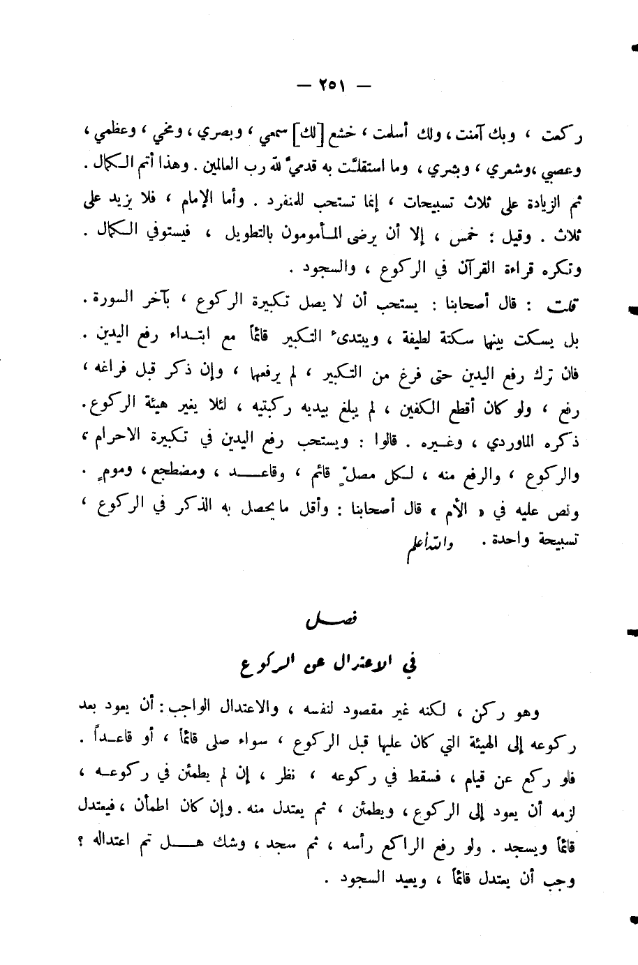 قُلْتُ: قَالَ أَصْحَابُنَا: يُسْتَحَبُّ أَنْ لَا يَصِلَ تَكْبِيرَةَ الرُّكُوعِ بِآخِرِ السُّورَةِ، بَلْ يَسْكُتُ بَيْنَهُمَا سَكْتَةً لَطِيفَةً، وَيَبْتَدِئُ التَّكْبِيرَ قَائِمًا مَعَ ابْتِدَاءِ رَفْعِ الْيَدَيْنِ. فَإِنْ تَرَكَ رَفْعَ الْيَدَيْنِ حَتَّى فَرَغَ مِنَ التَّكْبِيرِ لَمْ يَرْفَعْهُمَا، وَإِنْ ذَكَرَ قَبْلَ فَرَاغِهِ رَفَعَ، وَلَوْ كَانَ أَقْطَعَ الْكَفَّيْنِ، لَمْ يَبْلُغْ بِيَدَيْهِ رُكْبَتَيْهِ، لِئَلَّا يُغَيِّرَ هَيْئَةَ الرُّكُوعِ. ذَكَرَهُ الْمَاوَرْدِيُّ وَغَيْرُهُ.