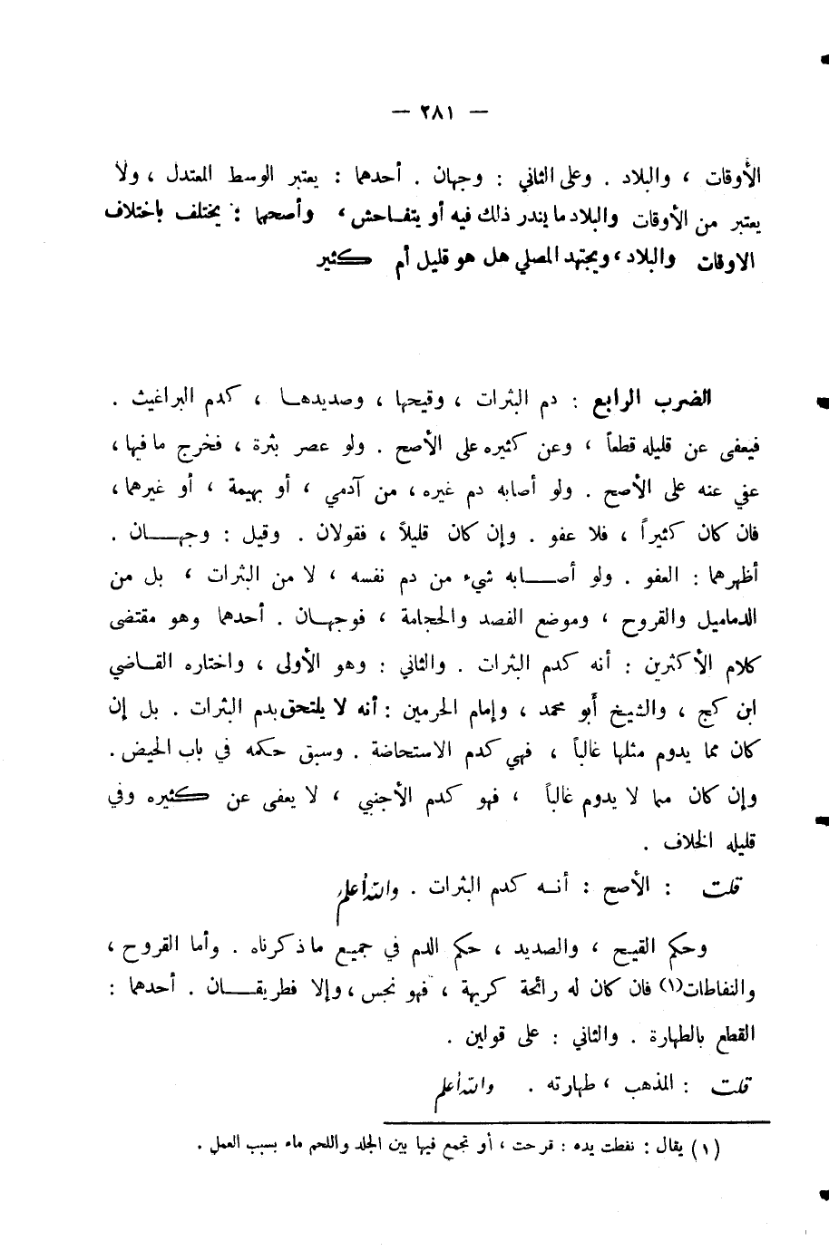قُلْتُ الْأَصَحُّ أَنَّهُ كَدَمِ الْبَثَرَاتِ. وَاللَّهُ أَعْلَمُ.