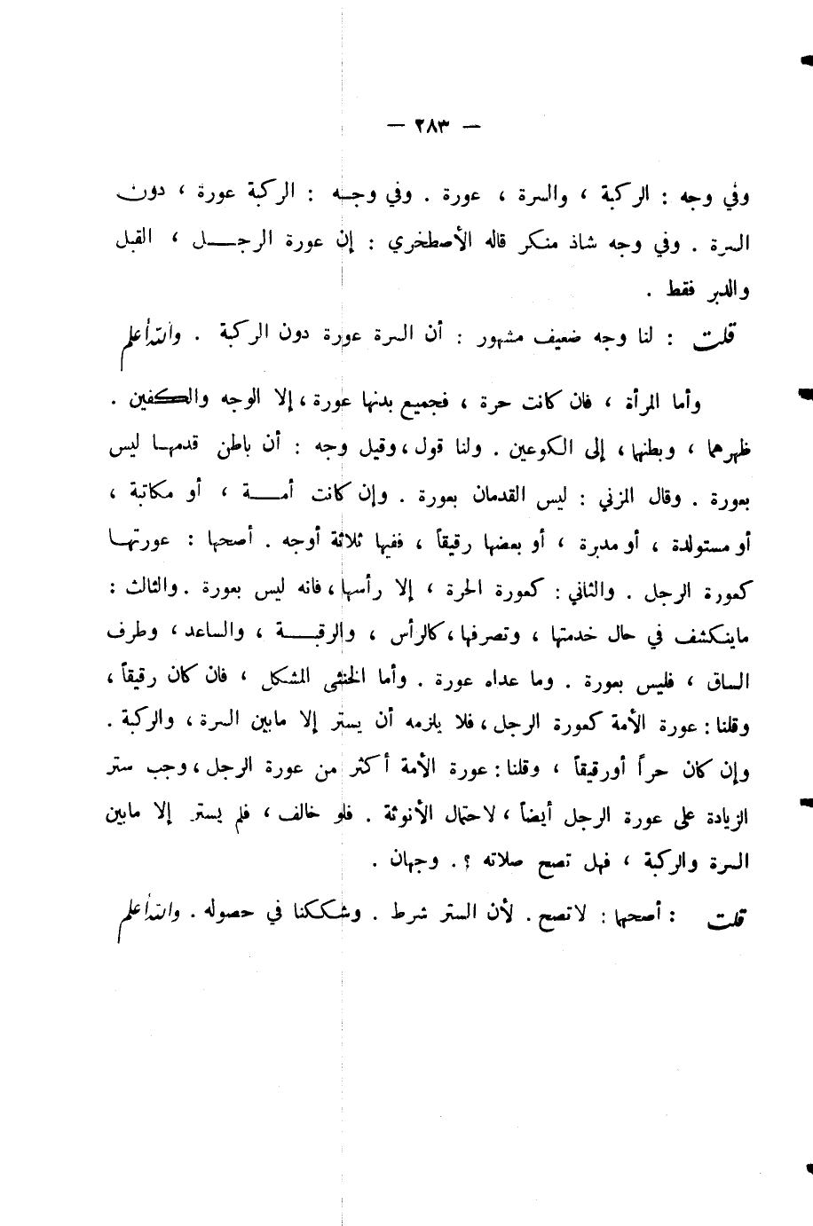 قُلْتُ: لَنَا وَجْهٌ ضَعِيفٌ مَشْهُورٌ: أَنَّ السُّرَّةَ عَوْرَةٌ دُونَ الرُّكْبَةِ. وَاللَّهُ أَعْلَمُ.