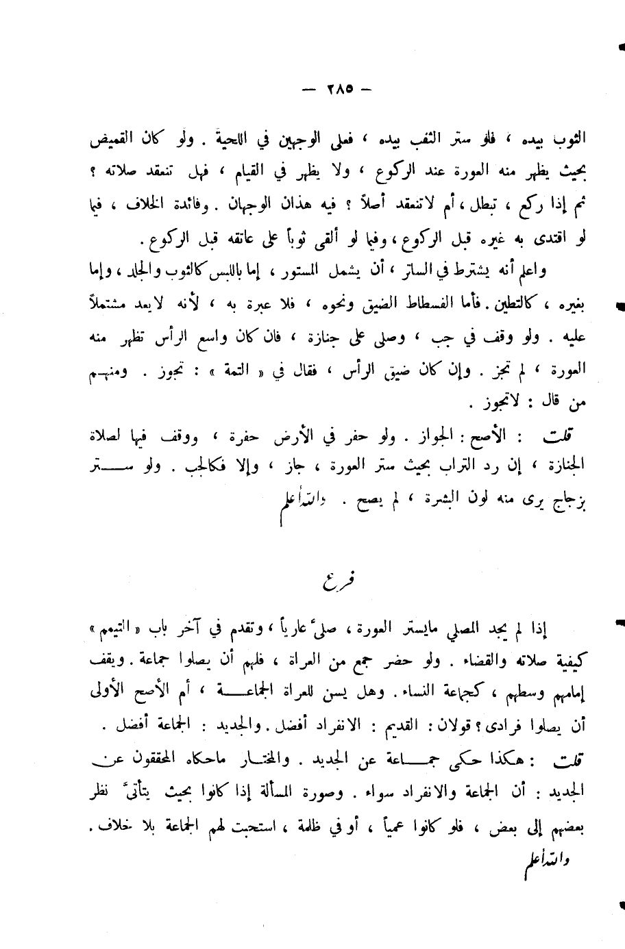 قُلْتُ: هَكَذَا حَكَى جَمَاعَةٌ عَنِ الْجَدِيدِ، وَالْمُخْتَارُ مَا حَكَاهُ الْمُحَقِّقُونَ عَنِ الْجَدِيدِ أَنَّ الْجَمَاعَةَ وَالِانْفِرَادَ سَوَاءٌ.