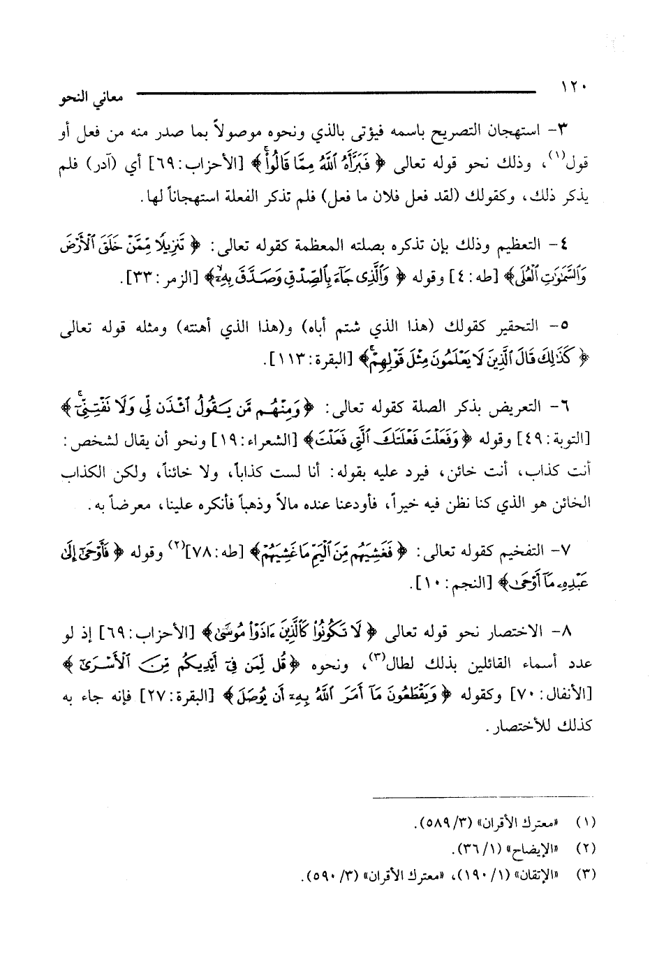 3 - استهجان التصريح باسمه فيؤتى بالذي ونحوه موصولا بما صدر منه من فعل أو قول (¬1)، وذلك نحو قوله تعالى: {فبرأه الله مما قالوا} [الأحزاب: 69]، أي (آدر) فلم يذكر ذلك، وكقولك (لقد فعل فلان ما فعل) فلم تذكر الفعلة استهجانا لها.