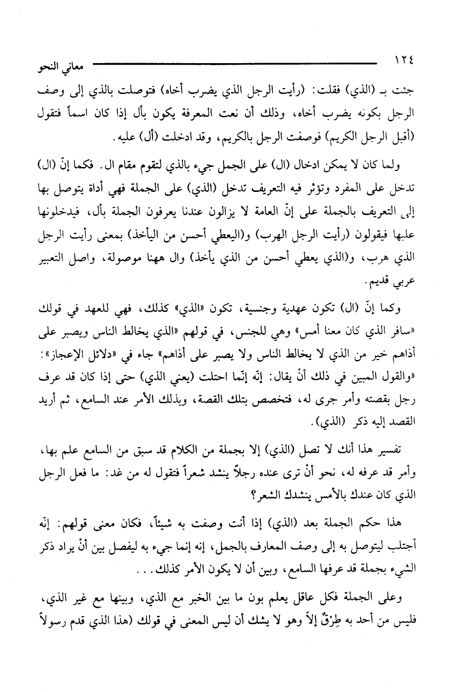 تفسير هذا أنك لا تصل (الذي) إلا بجملة من الكلام قد سبق من السامع علم بها، وأمر قد عرفه له، نحو أن ترى عنده رجلا ينشد شعرًا فتقول له من غد: ما فعل الرجل الذي كان عندك بالأمس ينشدك الشعر؟