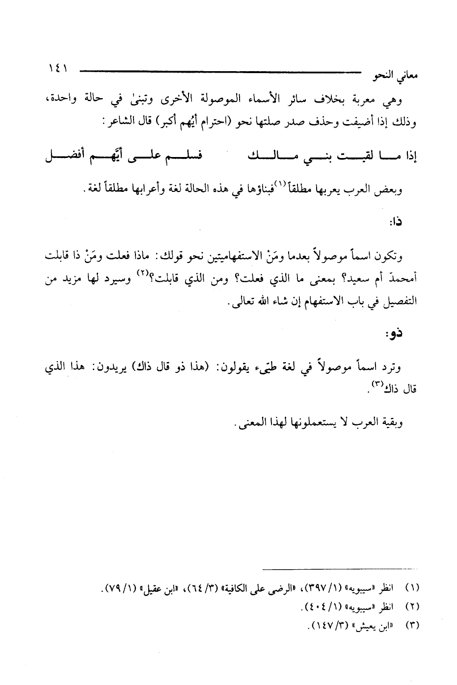 وتكون اسمًا موصولا بعدما ومن الاستفهاميتين نحو قولك: ماذا فعلت ومن ذا قابلت أمحمد أم سعيد؟ بمعنى ما الذي فعلت؟ ومن الذي قابلت؟ (¬2) وسيرد لها مزيد من التفصيل في باب الاستفهام إن شاء الله تعالى: