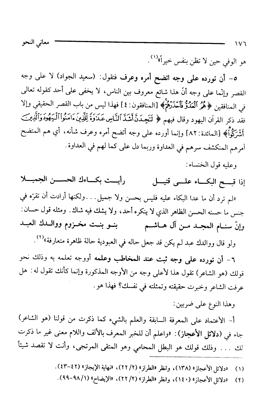 (¬2) دلائل الإعجاز 140، وانظر الطراز 2/ 22، الإيضاح 1/ 98 - 99