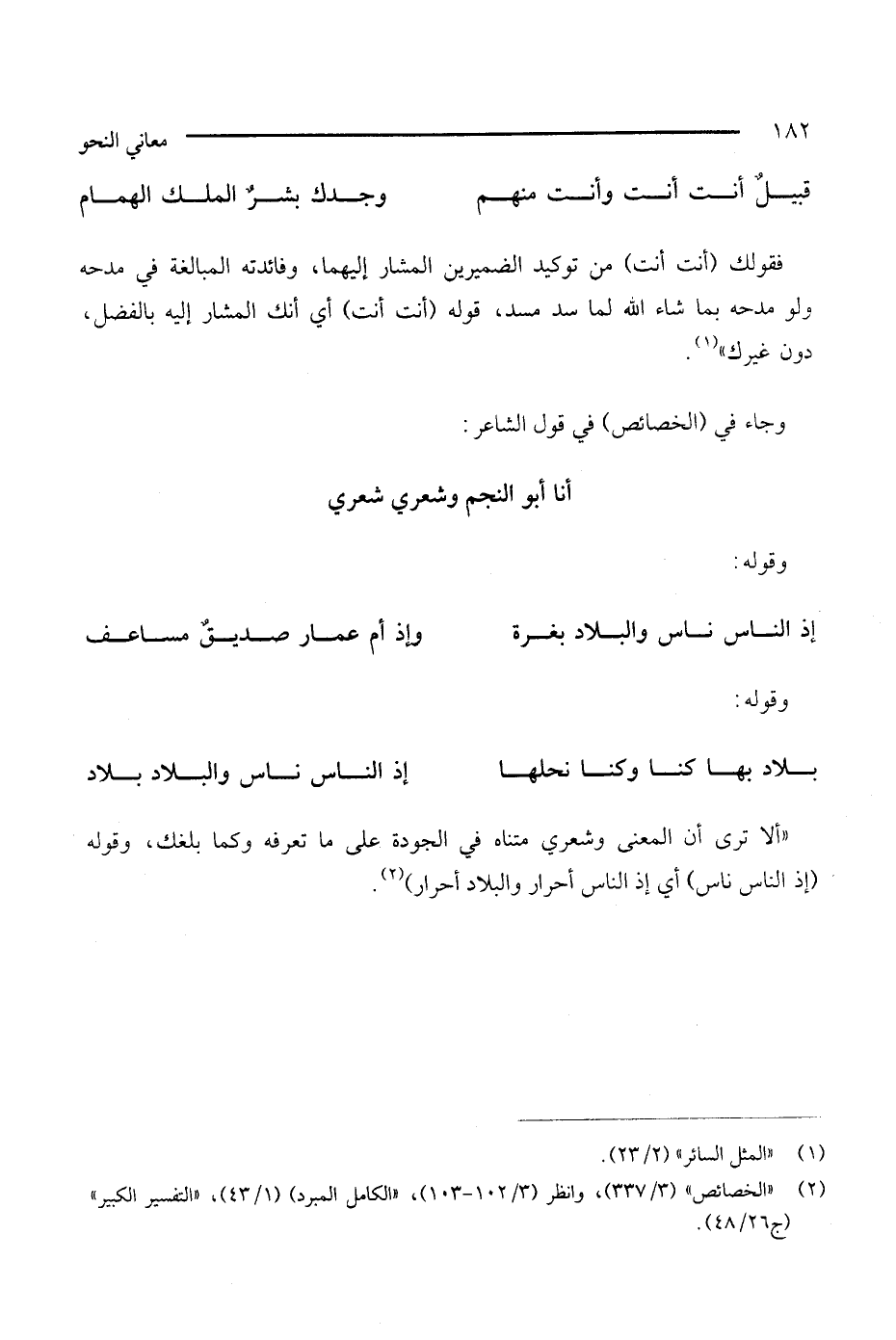 (¬2) الخصائص 3/ 337، وانظر 3/ 102 - 103، الكامل للمبرد 1/ 43، التفسير الكبير 26/ 48