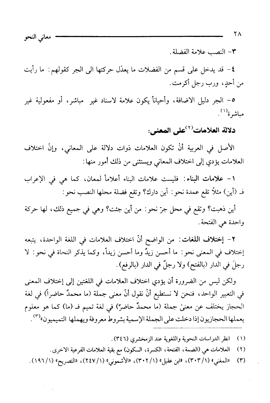 الأصل في العربية أن تكون العلامات ذوات دلالة على المعاني، وإن اختلاف العلامات يؤدي إلى اختلاف المعاني ويستثني من ذلك أمور منها: