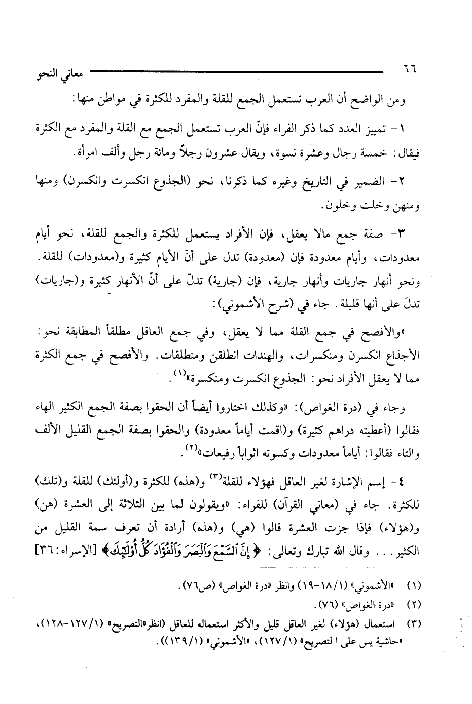 ومن الواضح أن العرب تستعمل الجمع للقلة والمفرد للكثرة في مواطن منها: