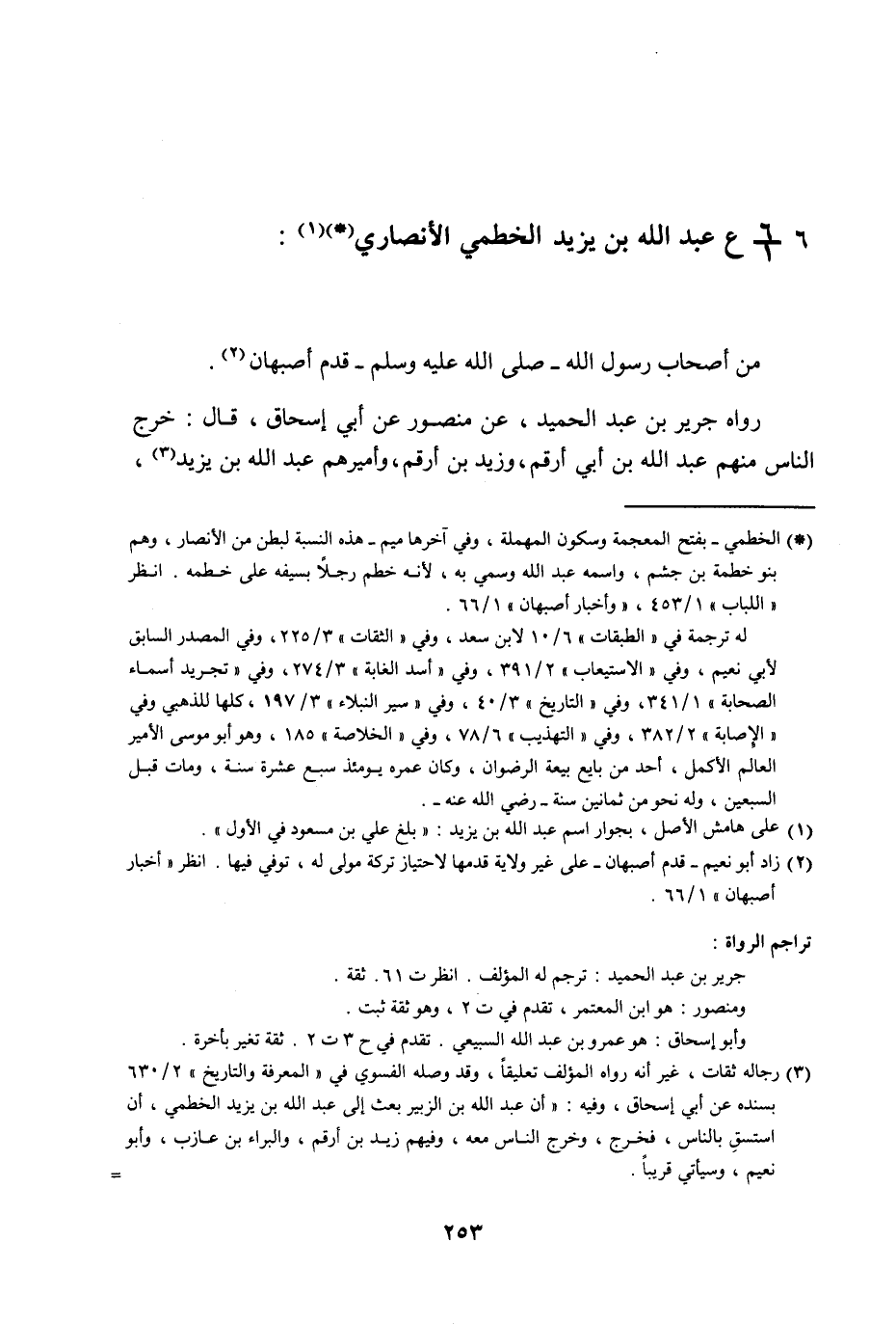 §عَبْدُ اللَّهِ بْنُ يَزِيدَ الْخَطْمِيُّ الْأَنْصَارِيُّ مِنْ أَصْحَابِ رَسُولِ اللَّهِ صَلَّى اللهُ عَلَيْهِ وَسَلَّمَ قَدِمَ أَصْبَهَانَ