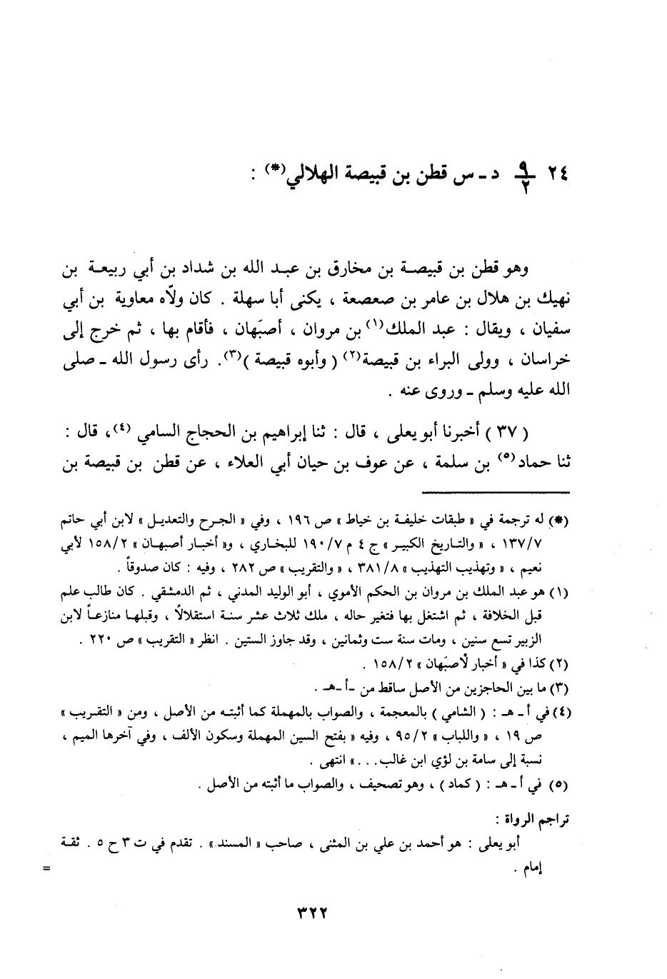 أَخْبَرَنَا أَبُو يَعْلَى , قَالَ: ثنا إِبْرَاهِيمُ بْنُ الْحَجَّاجِ السَّامِيُّ , قَالَ: ثنا حَمَّادُ بْنُ سَلَمَةَ , عَنْ عَوْفِ بْنِ حَيَّانَ أَبِي الْعَلَاءِ , عَنْ قَطَنِ بْنِ قَبِيصَةَ بْنِ -[323]- مُخَارِقٍ , أَنَّ أَبَاهُ , قَالَ: سَمِعْتُ رَسُولَ اللَّهِ صَلَّى اللهُ عَلَيْهِ وَسَلَّمَ يَقُولُ: §«الْعِيَافَةُ وَالطَّرْقُ مِنَ الْجِبْتِ» , هَذَا الْمَتْنُ لَمْ يَرْوِهِ غَيْرُهُ -[324]- وَأَخْبَرَنَا إِبْرَاهِيمُ بْنُ شَرِيكٍ الْأَسَدِيُّ , قَالَ: ثنا شِهَابُ بْنُ عَبَّادٍ , قَالَ: ثنا حَمَّادُ بْنُ زَيْدٍ , عَنْ هَارُونَ بْنِ رِئَابٍ , عَنْ كِنَانَةَ بْنِ نُعَيْمٍ , عَنْ قَبِيصَةَ -[325]- بْنِ مُخَارِقٍ , قَالَ: تَحَمَّلْتُ حَمَالَةً فَأَتَيْتُ النَّبِيَّ صَلَّى اللهُ عَلَيْهِ وَسَلَّمَ أَسْأَلُهُ , فَذَكَرَ الْحَدِيثَ بِطُولِهِ