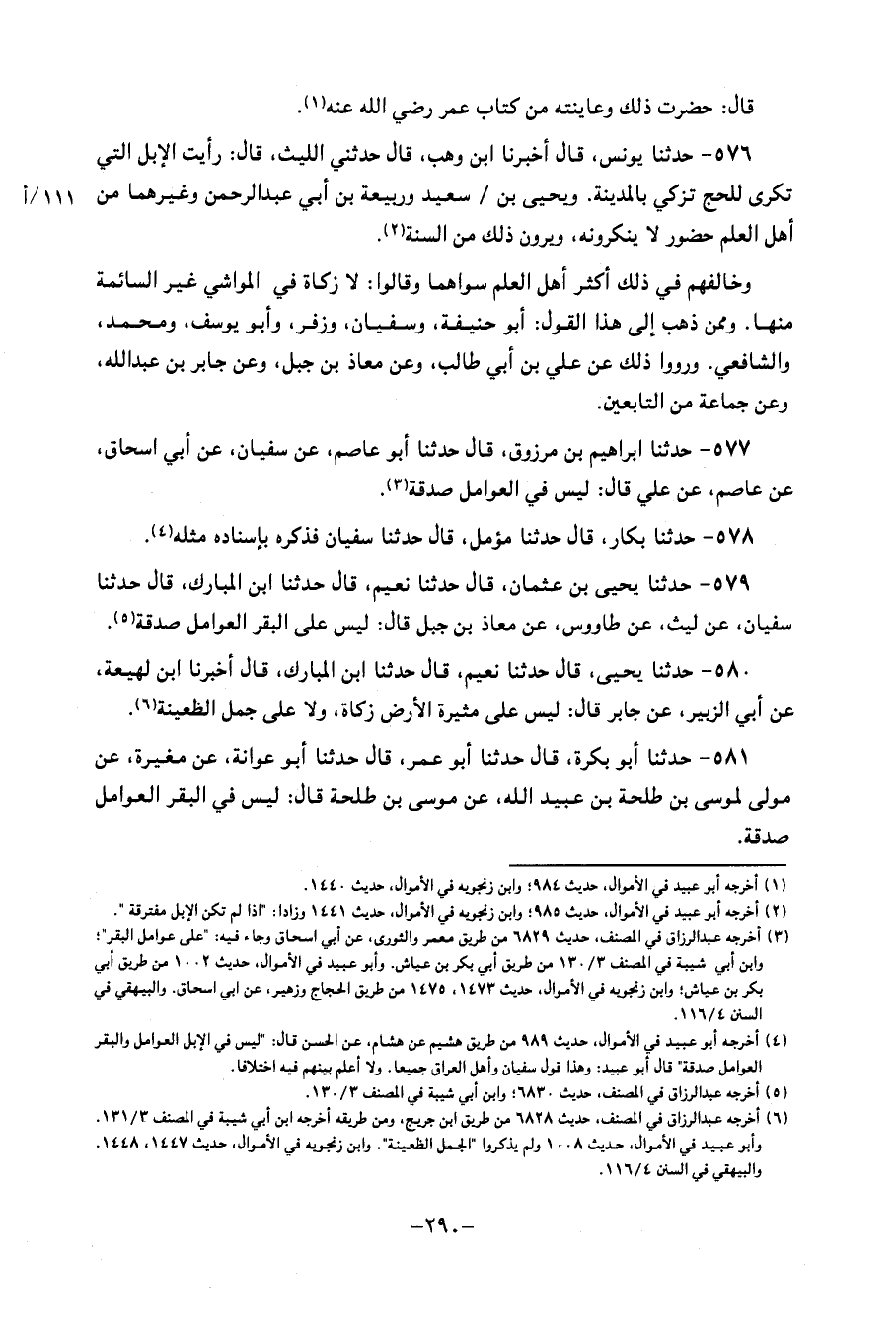 576 - حَدَّثَنَا يُونُسُ، قَالَ: أَخْبَرَنَا ابْنُ وَهْبٍ، قَالَ: حَدَّثَنِي اللَّيْثُ، قَالَ: " رَأَيْتُ الإِبِلَ الَّتِي تُكْرَى لِلْحَجِّ تُزَكَّى بِالْمَدِينَةِ وَيَحْيَى بْنُ سَعِيدٍ، وَرَبِيعَةُ بْنُ أَبِي عَبْدِ الرَّحْمَنِ، وَغَيْرُهُمَا مِنْ أَهْلِ الْعِلْمِ حُضُورٌ لَا يُنْكِرُونَهُ، وَيَرَوْنَ ذَلِكَ مِنَ السُّنَّةِ " وَخَالَفَهُمْ فِي ذَلِكَ أَكْثَرُ أَهْلِ الْعِلْمِ سِوَاهُمَا، وَقَالُوا: لَا زَكَاةَ فِي الْمَوَاشِي غَيْرِ السَّائِمَةِ مِنْهَا وَمِمَّنْ ذَهَبَ إِلَى هَذَا الْقَوْلِ: أَبُو حَنِيفَةَ، وَسُفْيَانُ، وَزُفَرُ، وَأَبُو يُوسُفَ، وَمُحَمَّدٌ، وَالشَّافِعِيُّ وَرَوَوْا ذَلِكَ عَنْ عَلِيِّ بْنِ أَبِي طَالِبٍ، وَعَنْ مُعَاذِ بْنِ جَبَلٍ، وَعَنْ جَابِرِ بْنِ عَبْدِ اللهِ، وَعَنْ جَمَاعَةٍ مِنَ التَّابِعِينَ