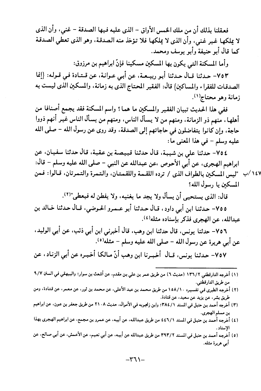 فعقلنا بِذَلِكَ أَن من ملك الْخمس الأواق الَّذِي عَلَيْهِ فِيهَا الصَّدَقَة غَنِي، وَأَن الَّذِي لَا يملكهَا غير غَنِي، وَأَن الَّذِي لَا يملكهَا فَلَا تُؤْخَذ مِنْهُ الصَّدَقَة، وَهُوَ الَّذِي تُعْطى لَهُ الصَّدَقَة كمَا قَالَ أَبُو حَنِيفَةَ، وَأَبُو يُوسُفَ، وَمُحَمّد وأمَّا المسكنة الَّتِي يكون بِهَا الْمِسْكِين مِسْكينا فَإِن إِبْرَاهِيم بن مَرْزُوق