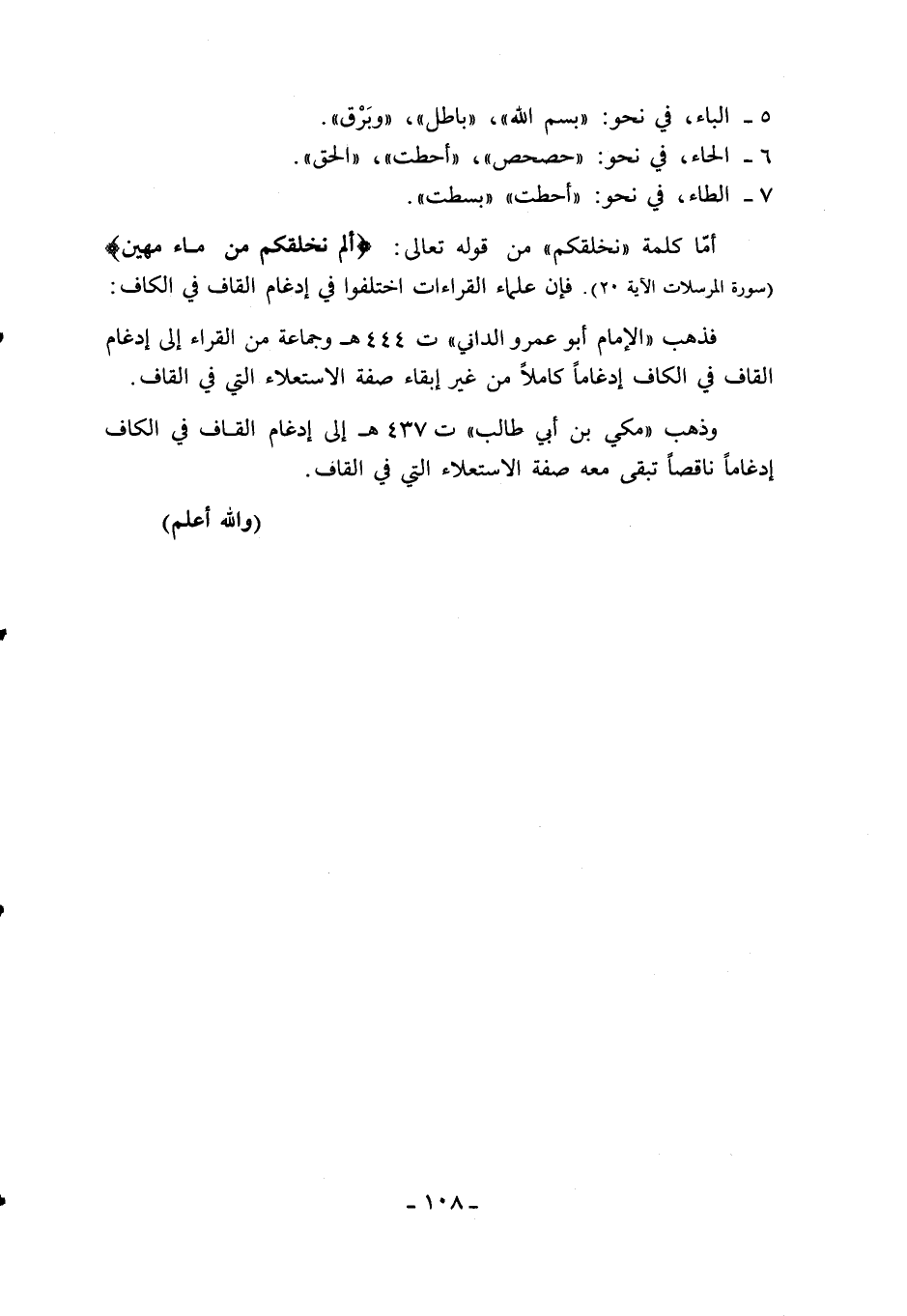 وذهب «مكي بن أبي طالب» ت 437 هـ إلى إدغام القاف في الكاف إدغاما ناقصا تبقى معه صفة الاستعلاء التي في القاف.
