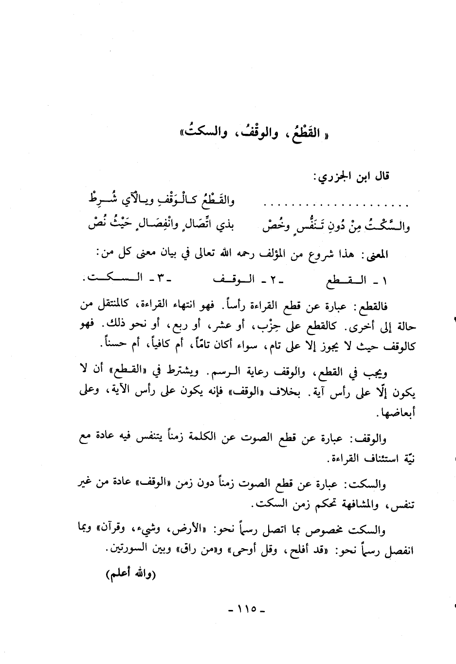 1 - القطع- 2 - الوقف- 3 - السكت.