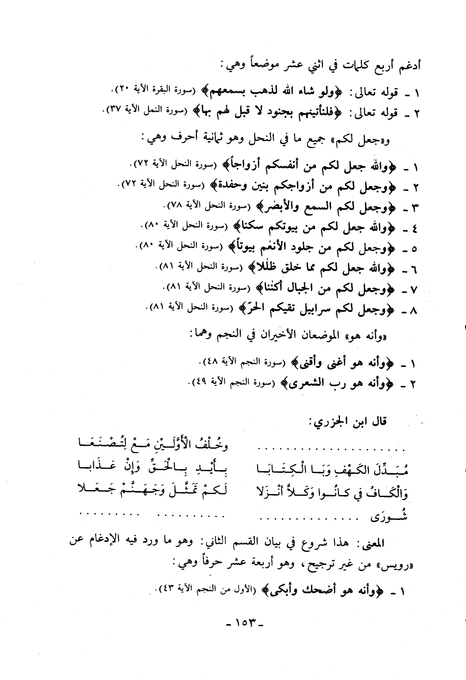 أدغم أربع كلمات في اثني عشر موضعا وهي: