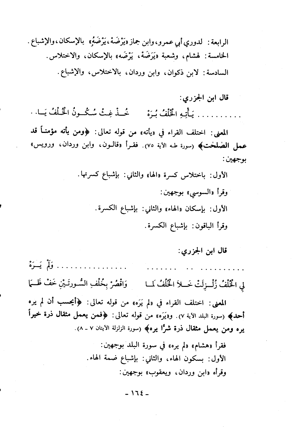 المعنى: اختلف القراء في «لم يره» من قوله تعالى: أَيَحْسَبُ أَنْ لَمْ يَرَهُ أَحَدٌ (سورة البلد الآية 7). و «يره» من قوله تعالى: فَمَنْ يَعْمَلْ مِثْقالَ ذَرَّةٍ خَيْراً يَرَهُ وَمَنْ يَعْمَلْ مِثْقالَ ذَرَّةٍ شَرًّا يَرَهُ (سورة الزلزلة الآيتان 7 - 8).