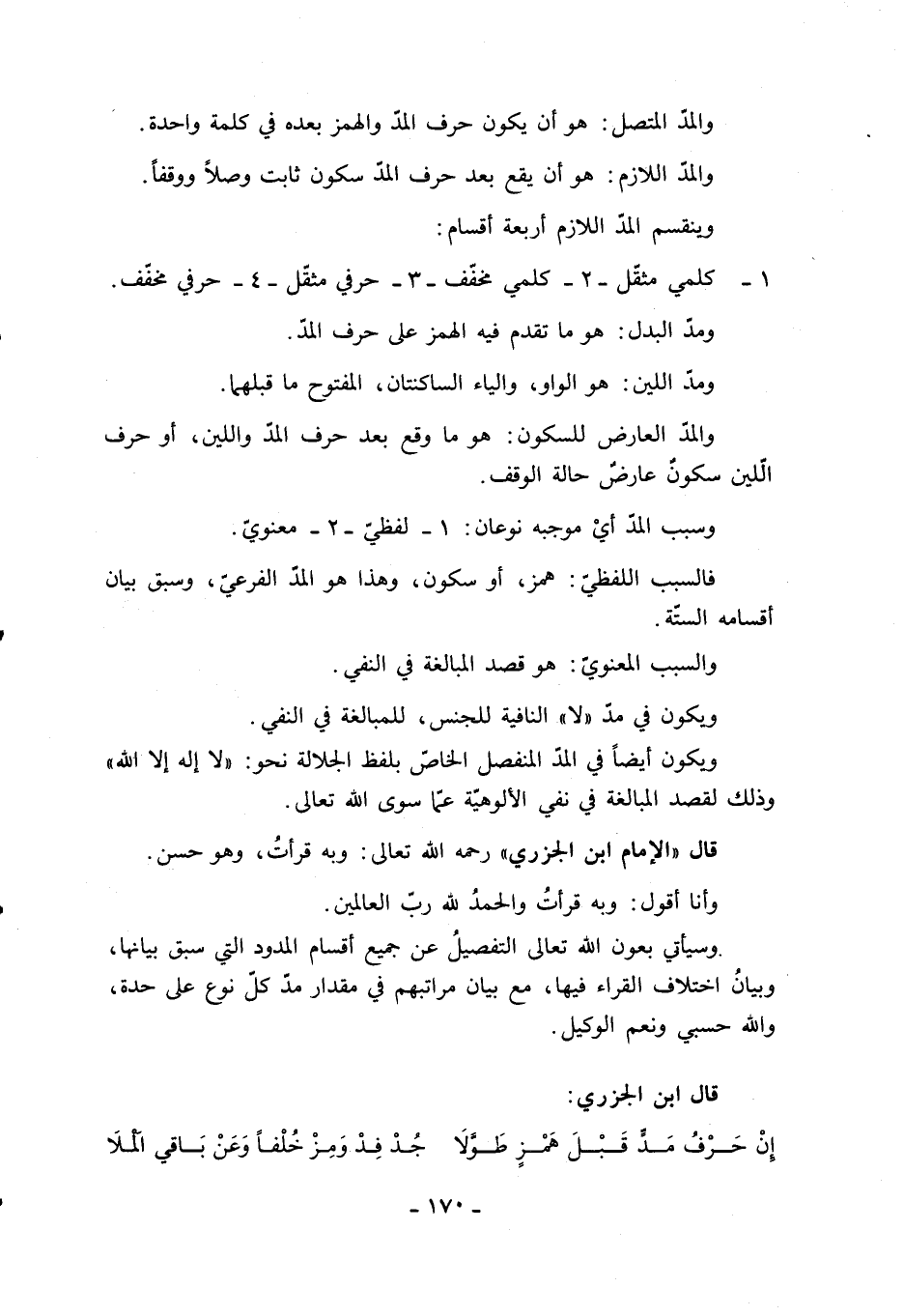 ويكون أيضا في المدّ المنفصل الخاصّ بلفظ الجلالة نحو: «لا إله إلا الله» وذلك لقصد المبالغة في نفي الألوهيّة عمّا سوى الله تعالى.