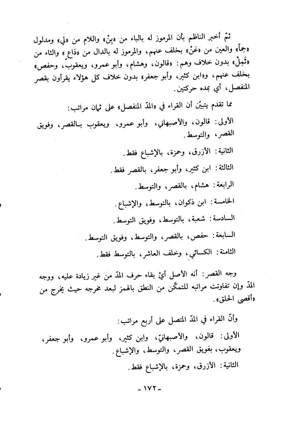 وأنّ القراء في المدّ المتصل على أربع مراتب: