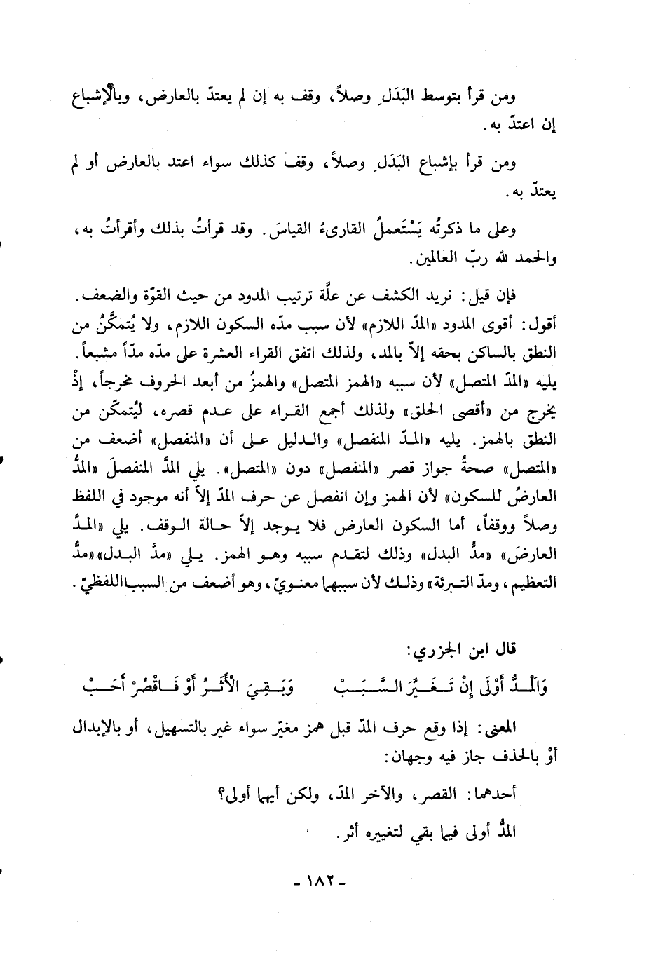 والمدّ أولى إن تغيّر السّبب ... وبقي الأثر أو فاقصر أحب