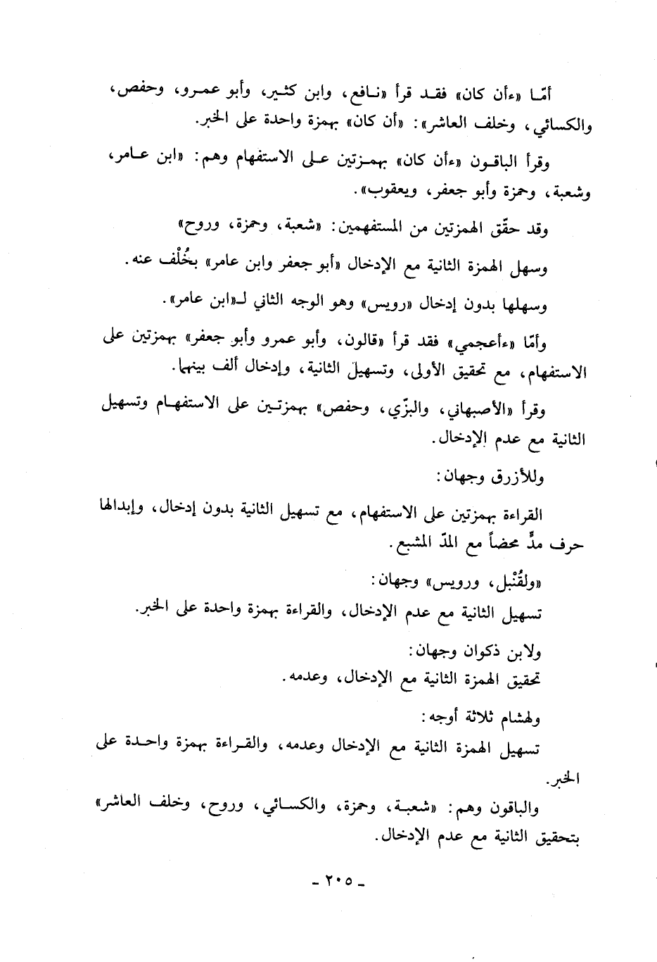والباقون وهم: «شعبة، وحمزة، والكسائي، وروح، وخلف العاشر» بتحقيق الثانية مع عدم الإدخال.
