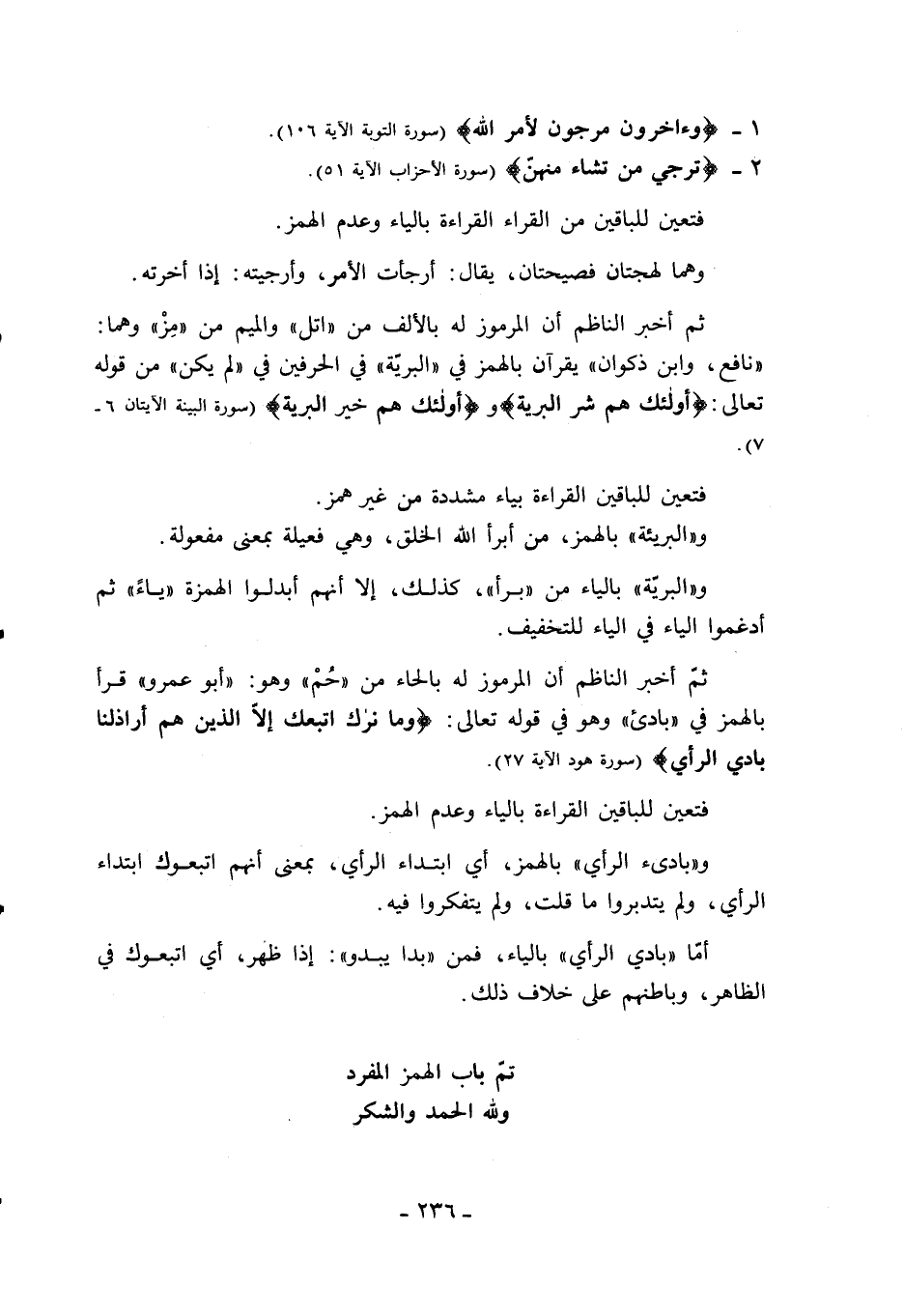 تمّ باب الهمز المفرد ولله الحمد والشكر