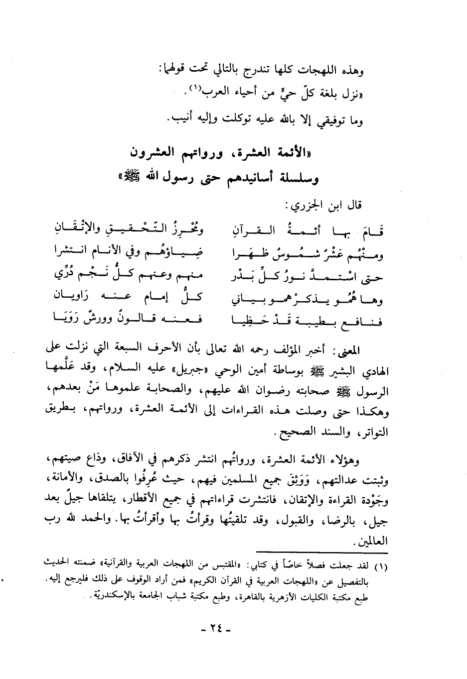 «الأئمة العشرة، ورواتهم العشرون وسلسلة أسانيدهم حتى رسول الله صلّى الله عليه وسلّم»