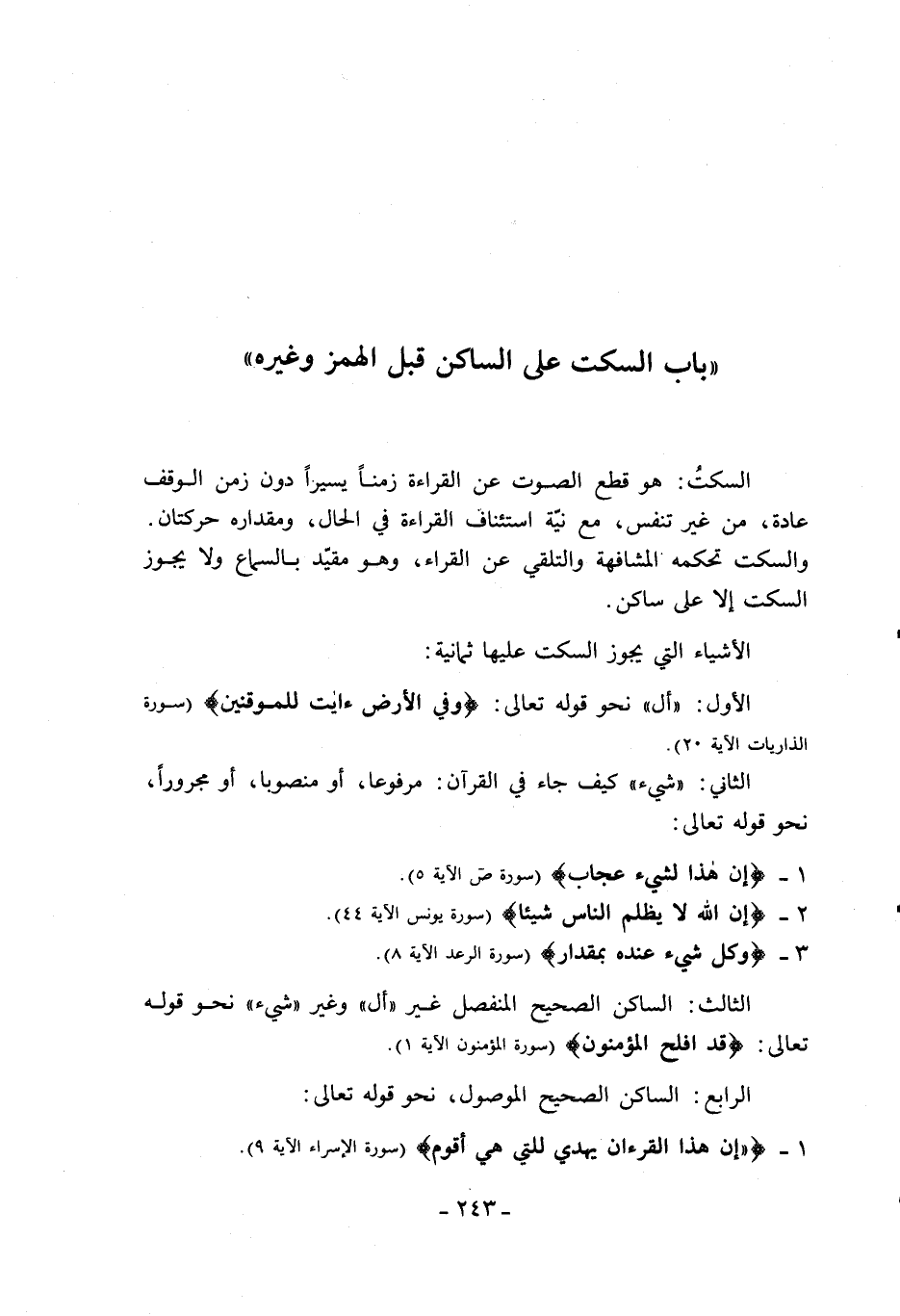 الثالث: الساكن الصحيح المنفصل غير «أل» وغير «شيء» نحو قوله تعالى: قَدْ أَفْلَحَ الْمُؤْمِنُونَ (سورة المؤمنون الآية 1).