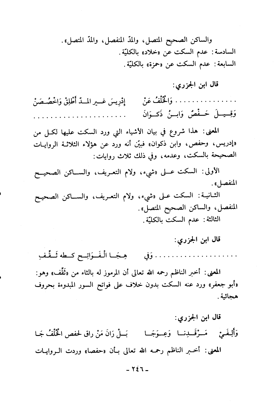 ..... والخلف عن ... إدريس غير المدّ أطلق واخصصن