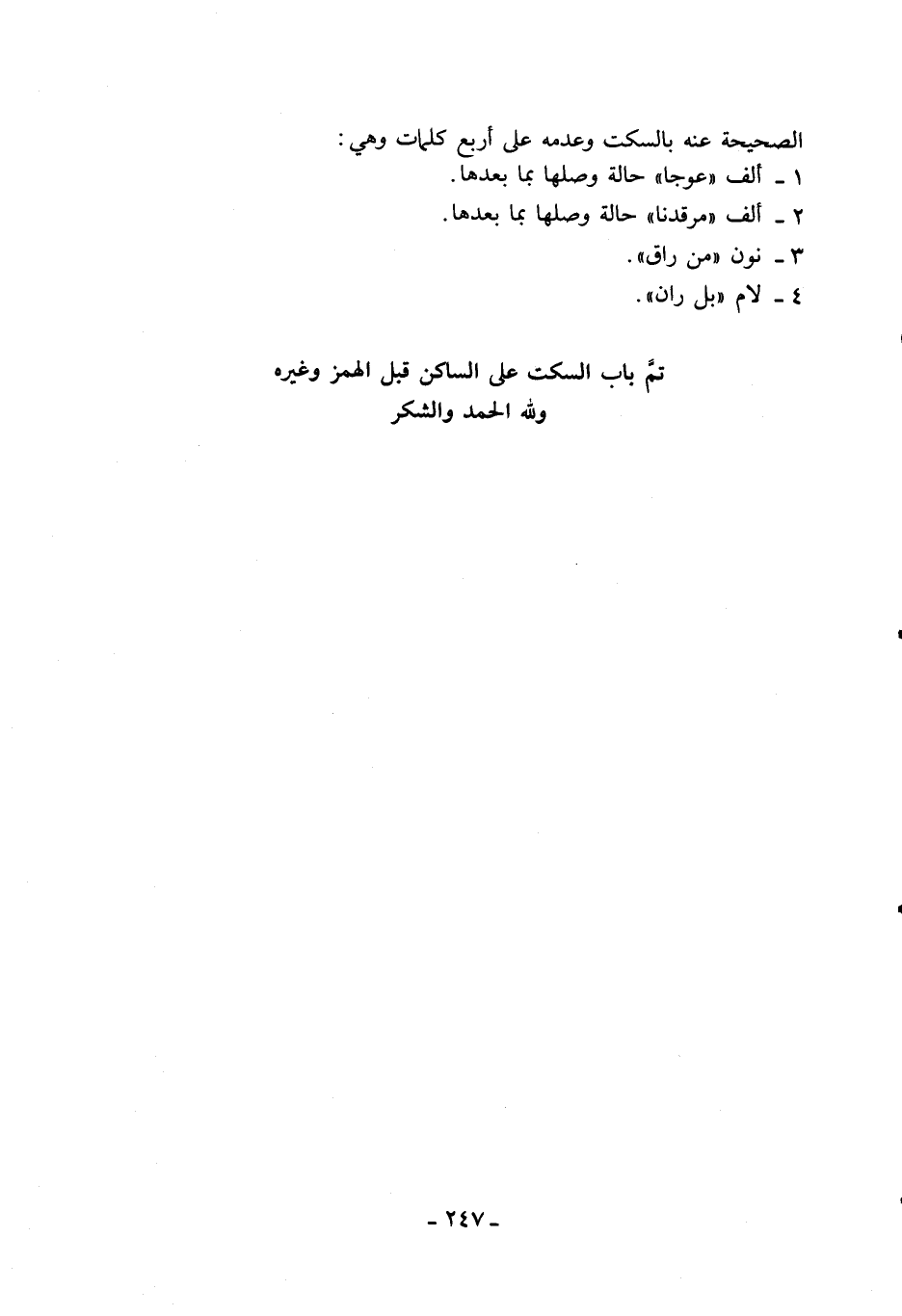 تمّ باب السكت على الساكن قبل الهمز وغيره ولله الحمد والشكر
